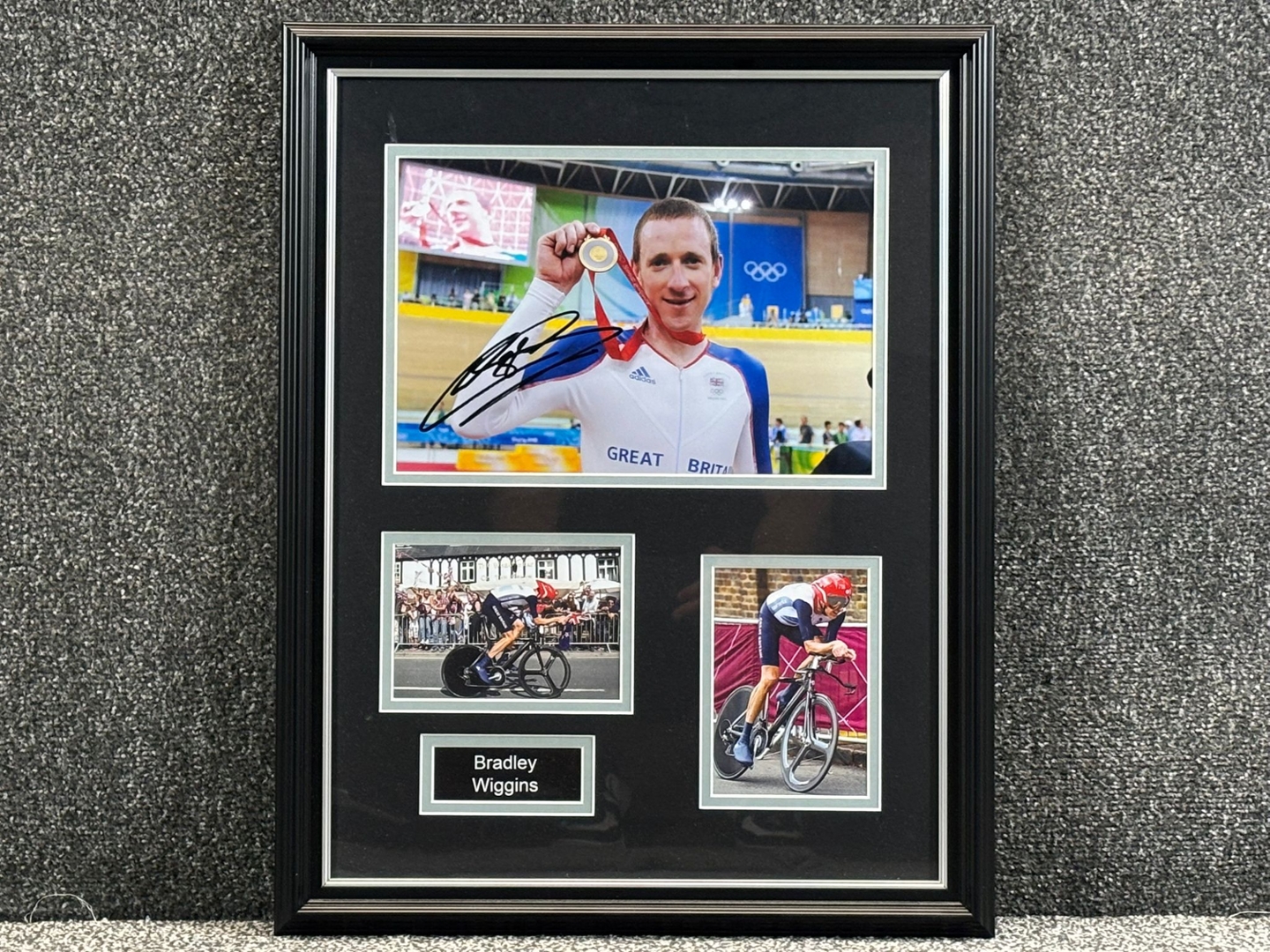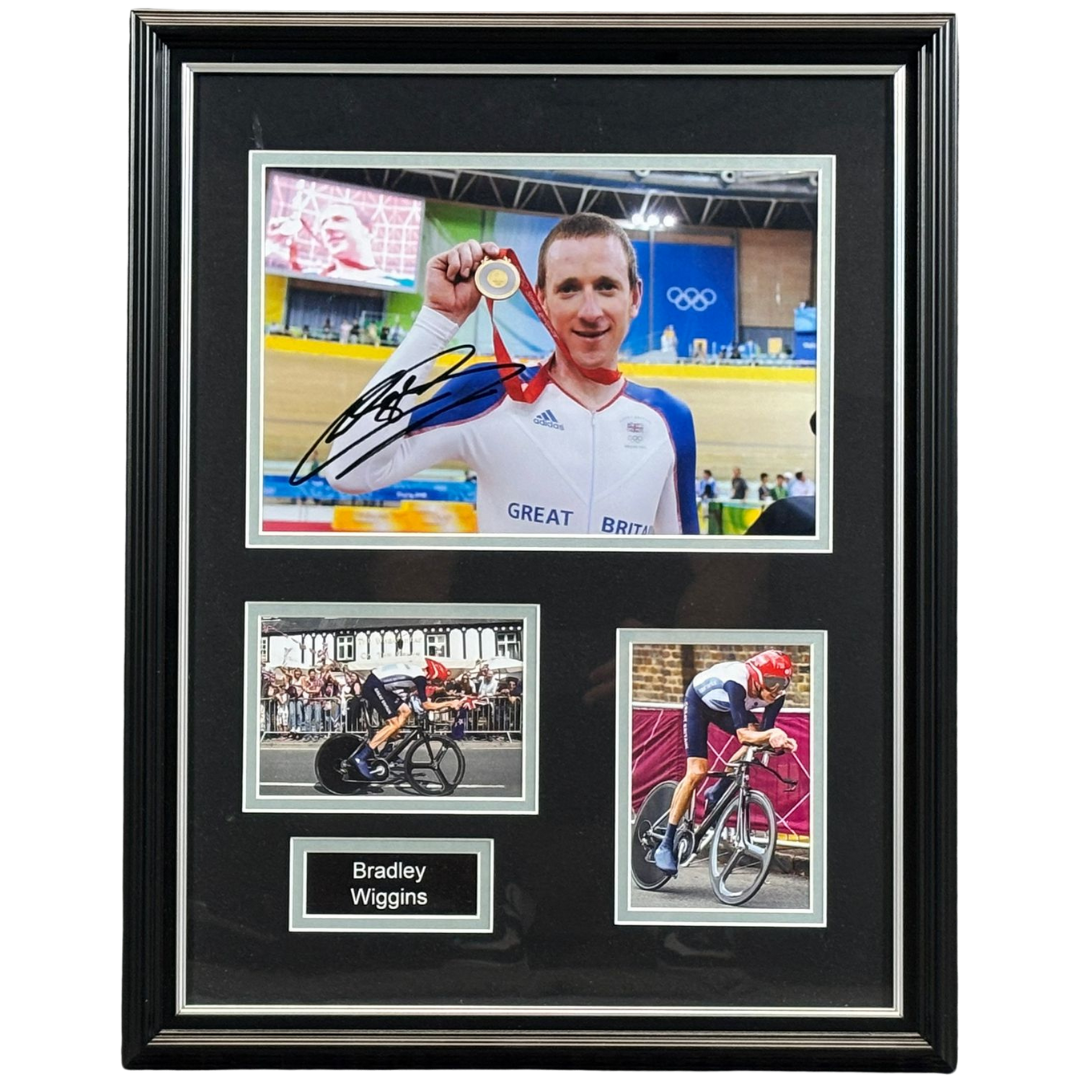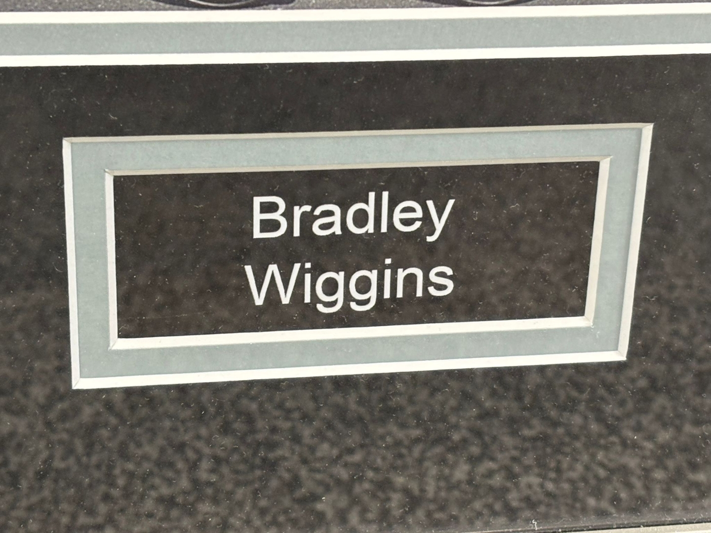 A signed and authenticated Bradley Wiggins Picture Montage in a presentation frame. Approx 56cm height, 44cm width.