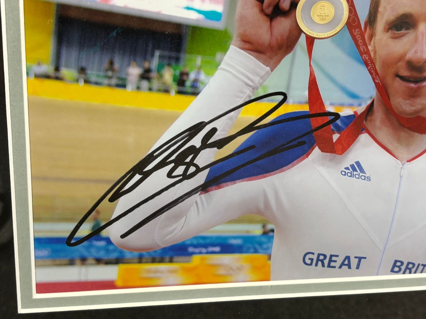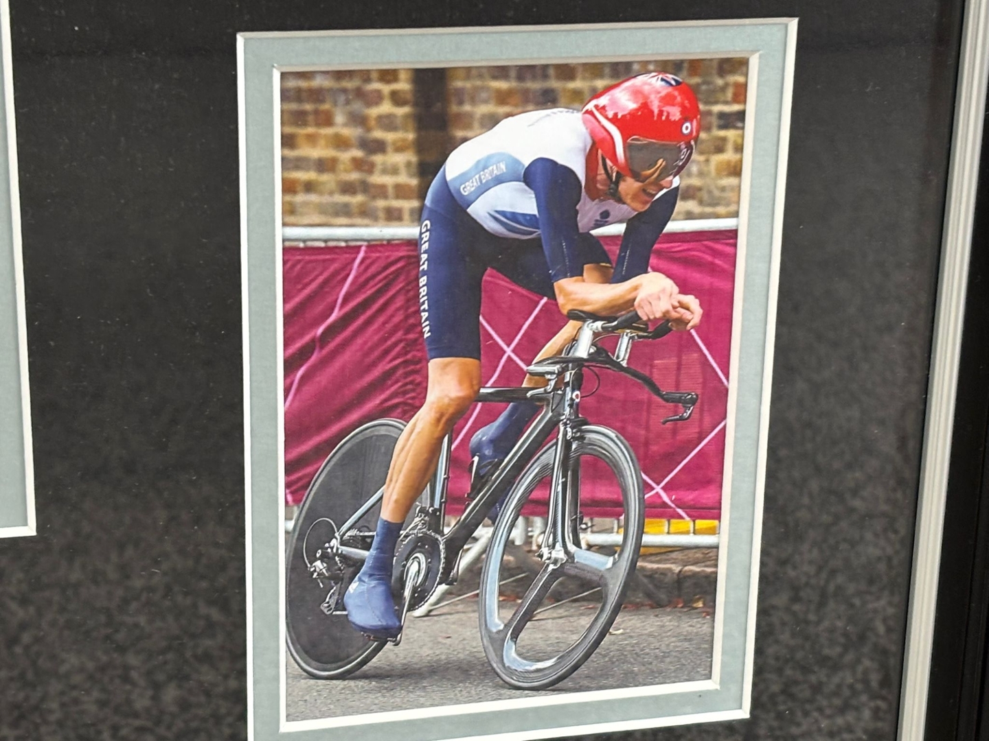 Elegantly framed with black and silver accents and complete with a name plaque, this officially authenticated item is the perfect centrepiece for fans of cycling history and Olympic excellence. A thrilling tribute to a trailblazer who redefined British sporting achievement.