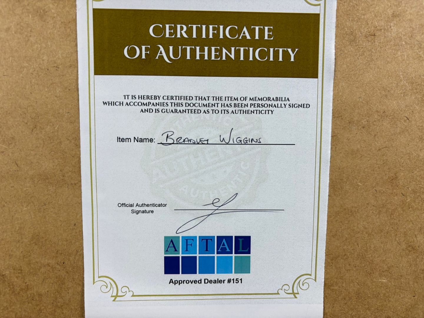 A signed and authenticated Bradley Wiggins picture montage, expertly displayed in a sleek presentation frame. Honouring one of Team GB’s most iconic athletes, this exclusive piece captures the strength, determination, and Olympic triumph of Sir Bradley Wiggins—Britain’s first Tour de France winner and multi-time gold medalist.