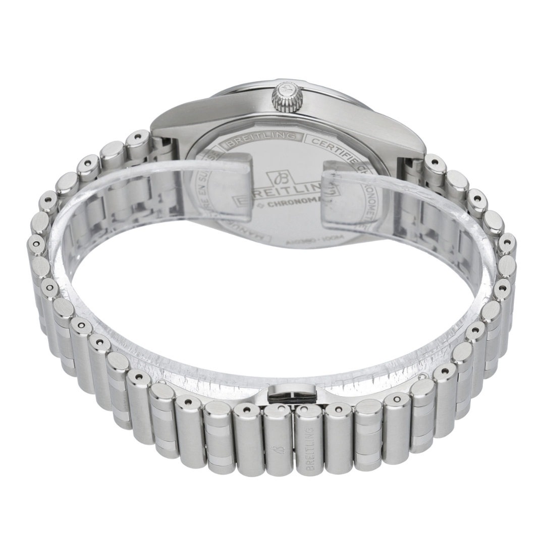 This model is powered by the Breitling Calibre 10 automatic movement, a COSC-certified chronometer known for its reliability and everyday accuracy. The movement delivers smooth operation, robust performance, and a 42-hour power reserve, making it well-suited for everyday wear.