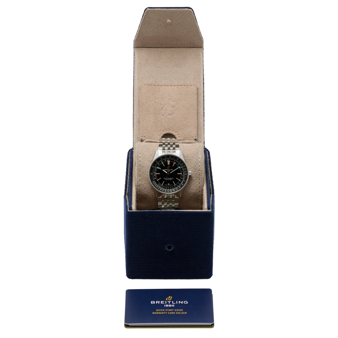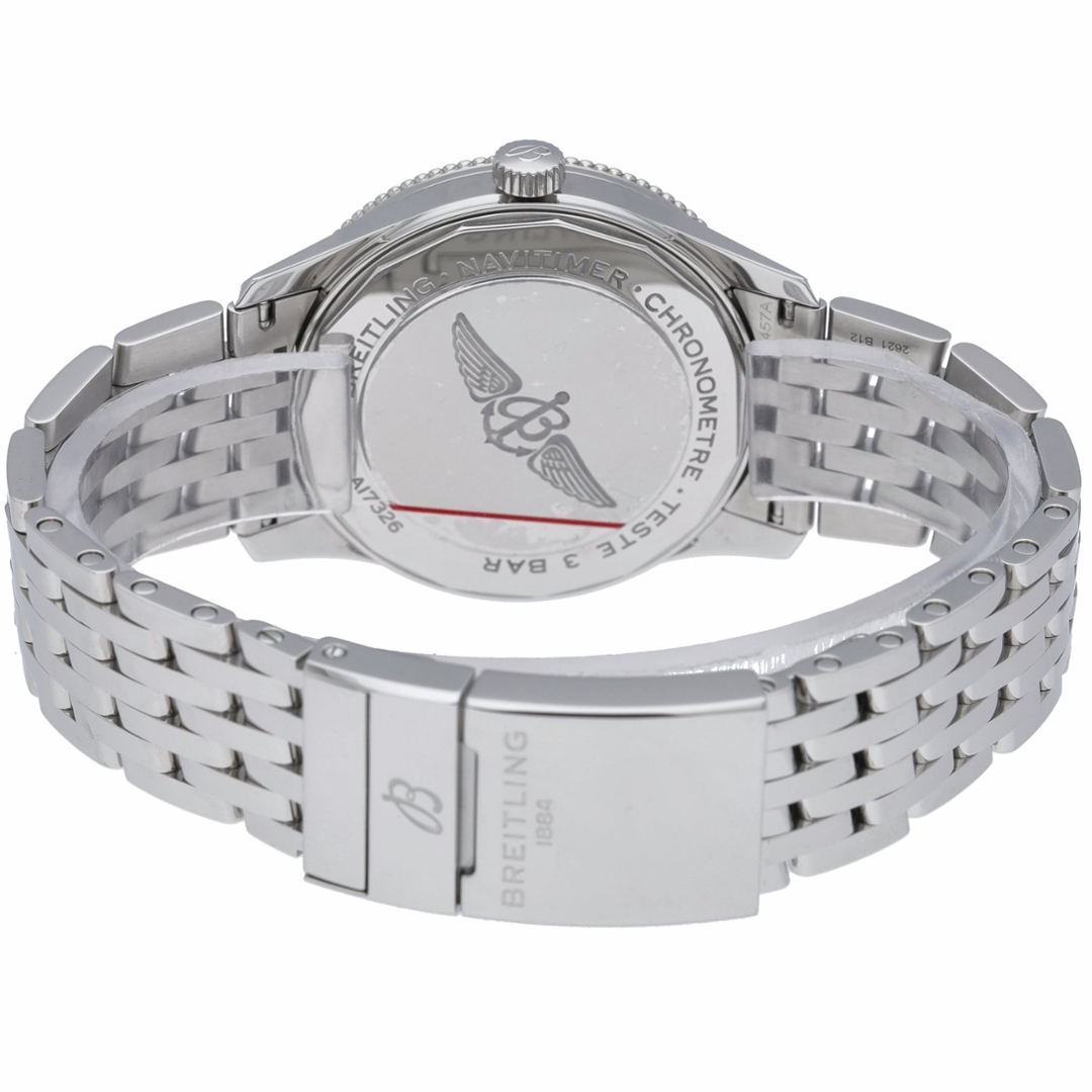 In immaculate condition, this watch promises durability and sustained aesthetic appeal. The pristine state of the Navitimer A17326 significantly enhances its desirability among collectors and investors alike. Furthermore, the 12-month WLC warranty offers peace of mind, assuring potential buyers of the watch's quality and reliability.