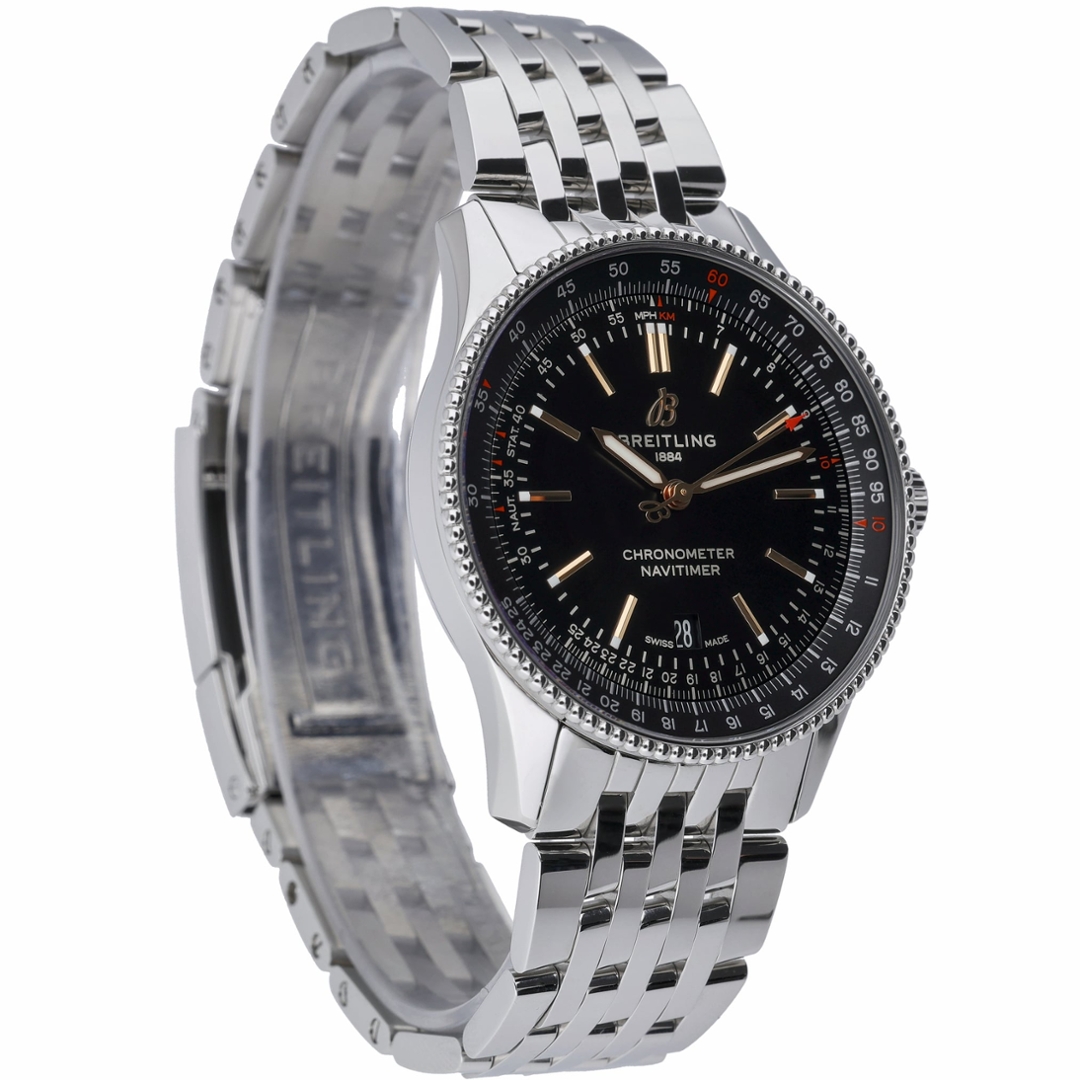 A Breitling Navitimer Watch, Stainless Steel with a Black Dial.