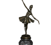 A bronze sculpture of a dancer titled Poetry in Pose, this enchanting piece captures a moment of delicate balance and youthful exuberance. Standing approximately 50cm high and 25cm wide, the sculpture depicts a young ballerina in mid-pose, one leg elegantly extended and her arms gently poised at her side. Her expression is light and serene, reflecting both confidence and joy in performance. The sculptor has masterfully captured the fluidity of dance, transforming it into a still moment that feels alive with grace.