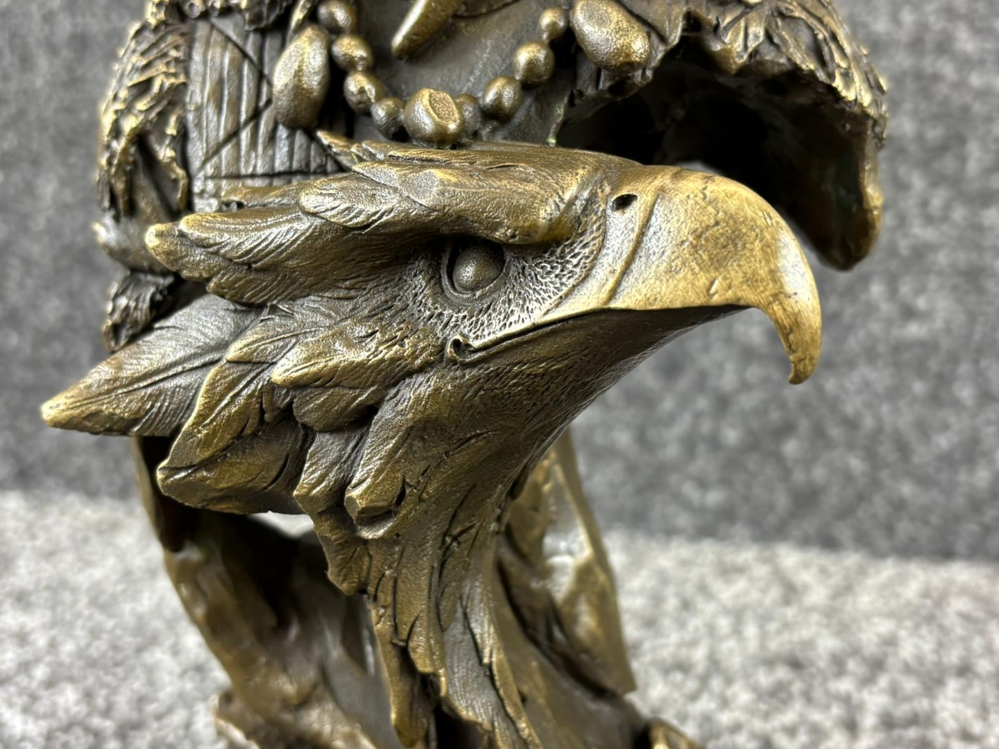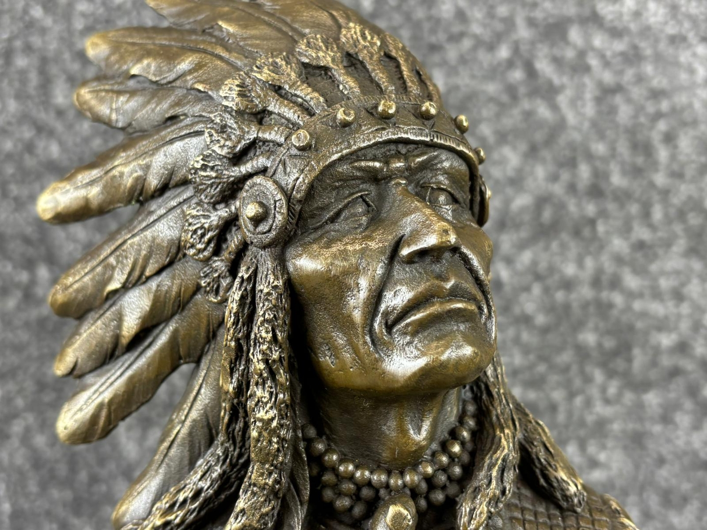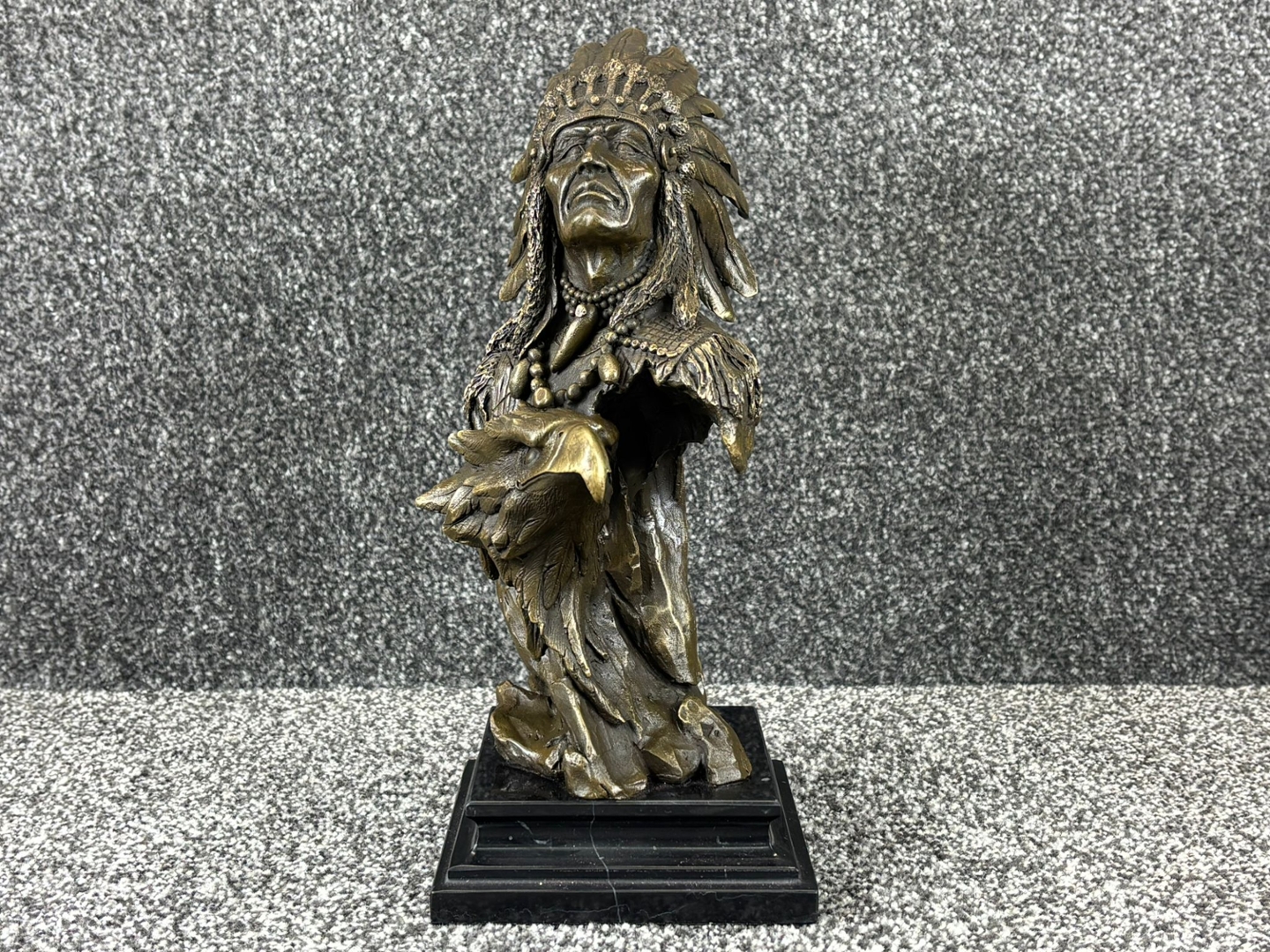 - > Bronze Sculpture of a Native American Chief with an Eagle