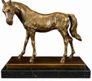 A bronze sculpture of a Walking Tiger on a black marble base.