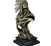 A bronze sculpture captures the dynamic motion and intense focus of an Indian archer, poised in the act of drawing his bow. The striking composition showcases remarkable craftsmanship, with intricate details evident in the archer’s muscular physique, determined expression, and flowing Mohawk-style hair. The partial bust design adds an ethereal, almost mythical quality, making it appear as though the figure is emerging from the base itself.