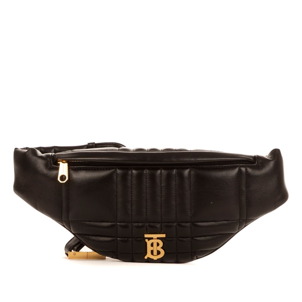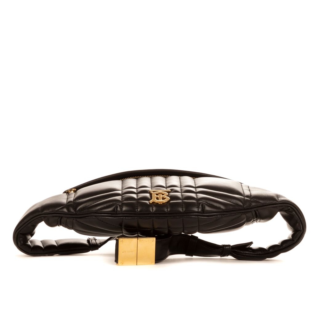 A vintage Burberry Black Calf Leather Banane BT bag with a certificate of authenticity, Approximately 16cm height, 26cm width.