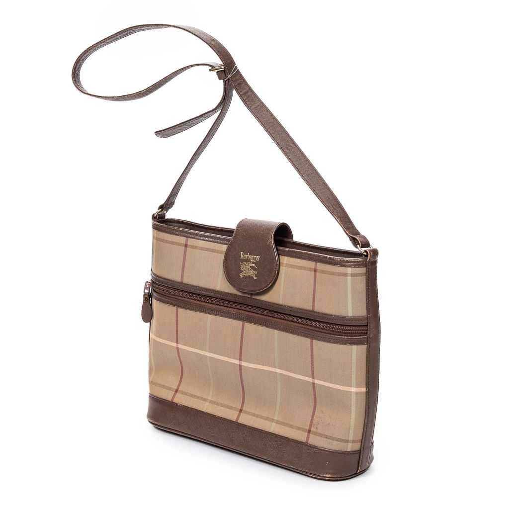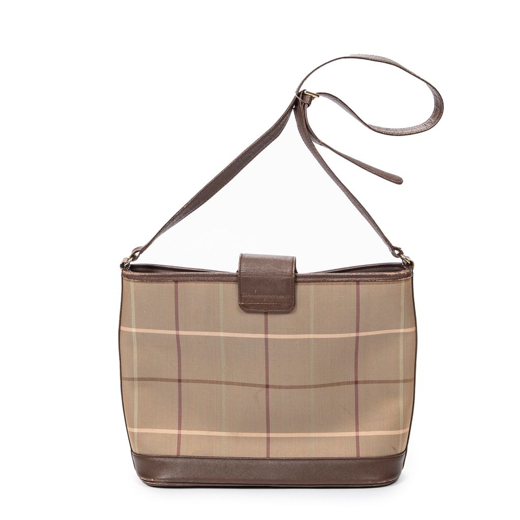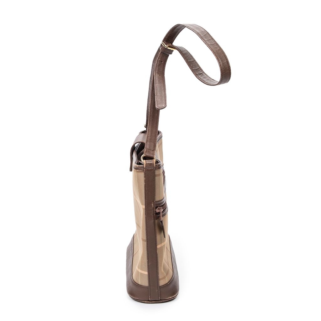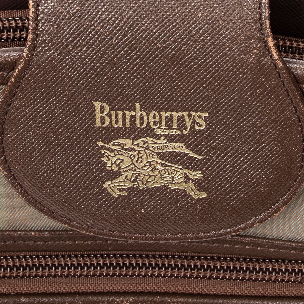 A vintage Burberry green/brown canvas Front Pocket Bucket Tote bag with a certificate of authenticity, Approximately 24cm height, 28cm width.