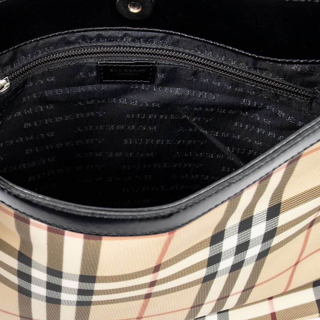 A vintage Burberry beige/black coated canvas Square Hobo bag with a certificate of authenticity, Approximately 25cm height, 29cm width.