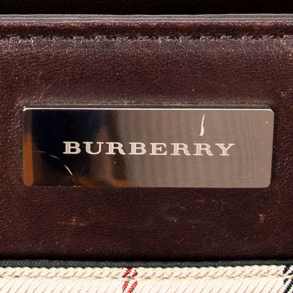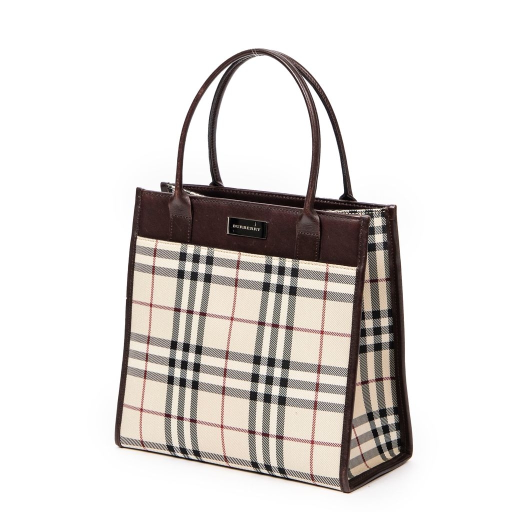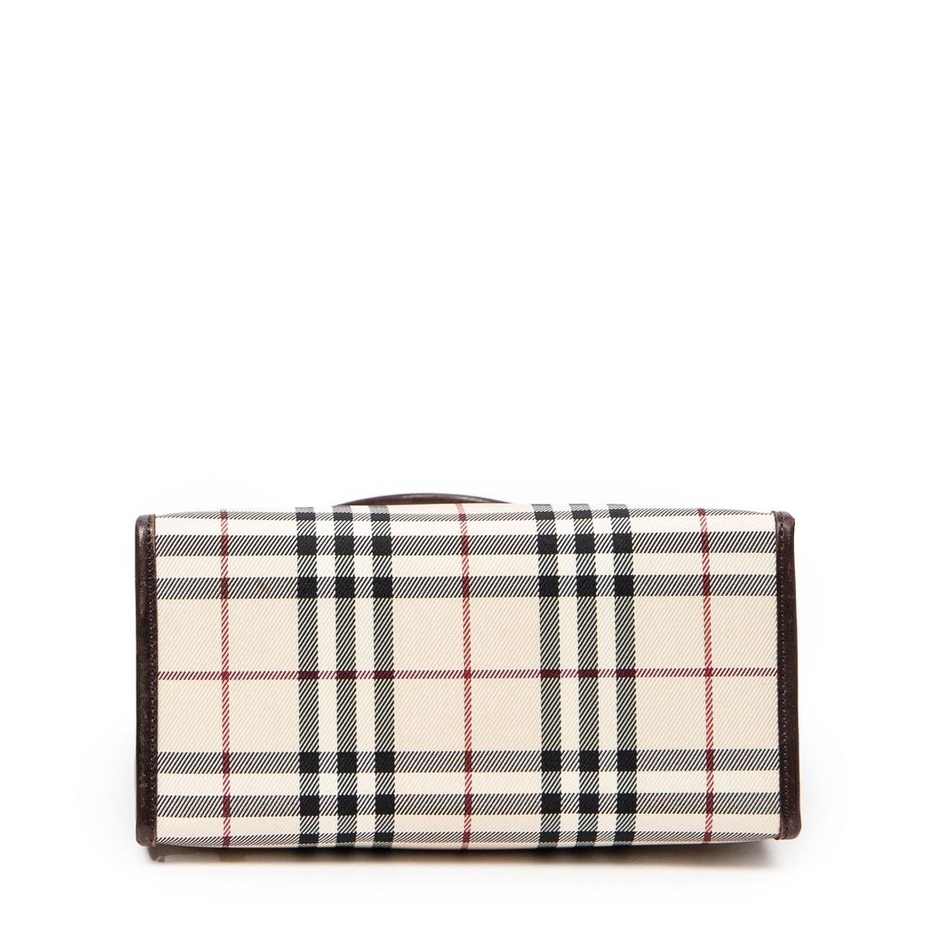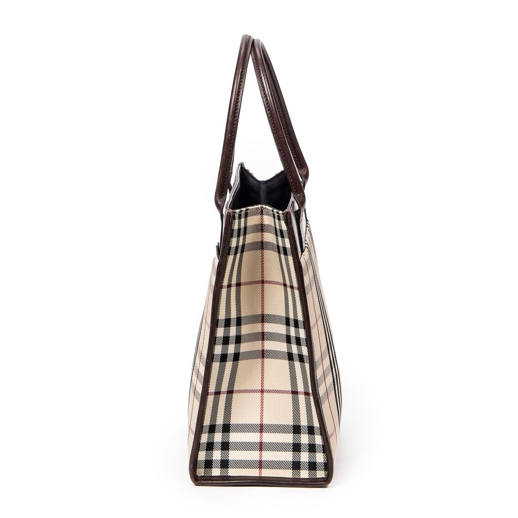 A vintage Burberry beige/dark brown canvas Square Open Tote bag with a certificate of authenticity, Approximately 22cm height, 22cm width.