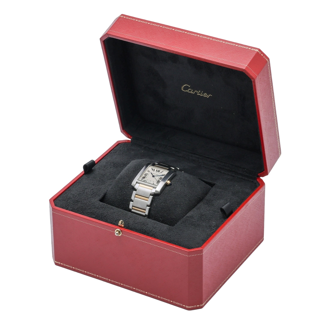 A Bi-Metal Cartier Tank Francaise Watch, Stainless Steel & Yellow Gold on a White Dial