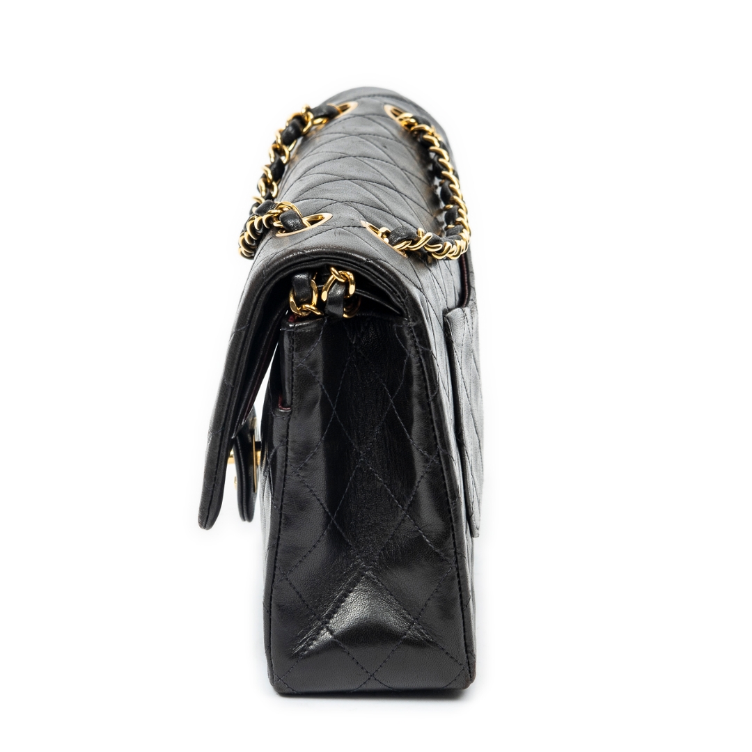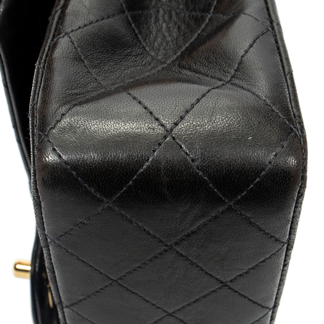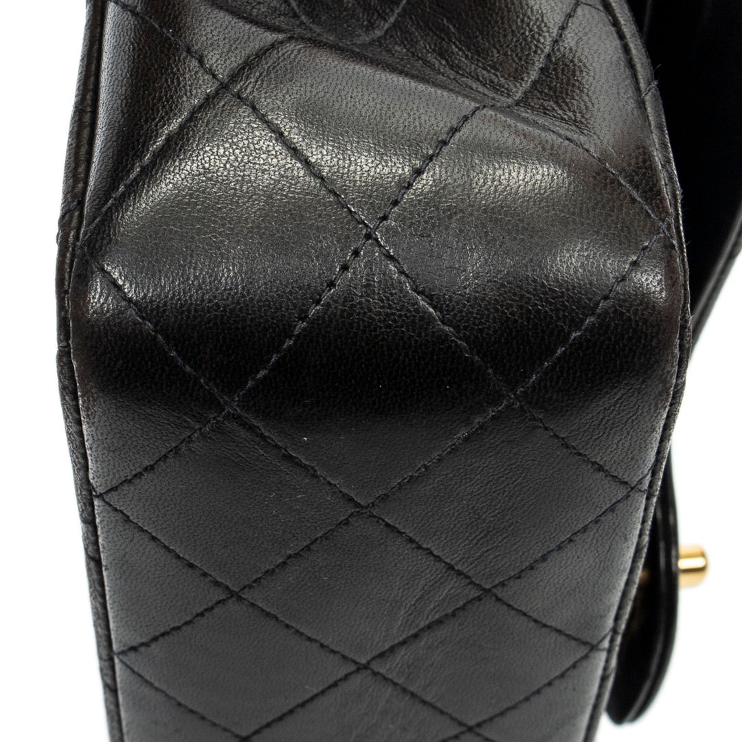 A vintage Chanel black quilted lambskin leather Classic Double Flap bag with a certificate of authenticity, Approximately 16cm height, 26cm width.