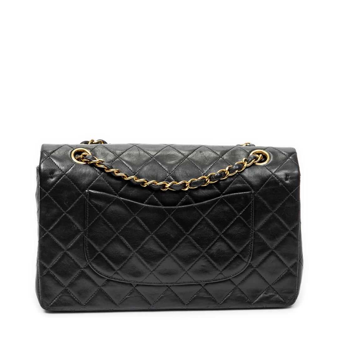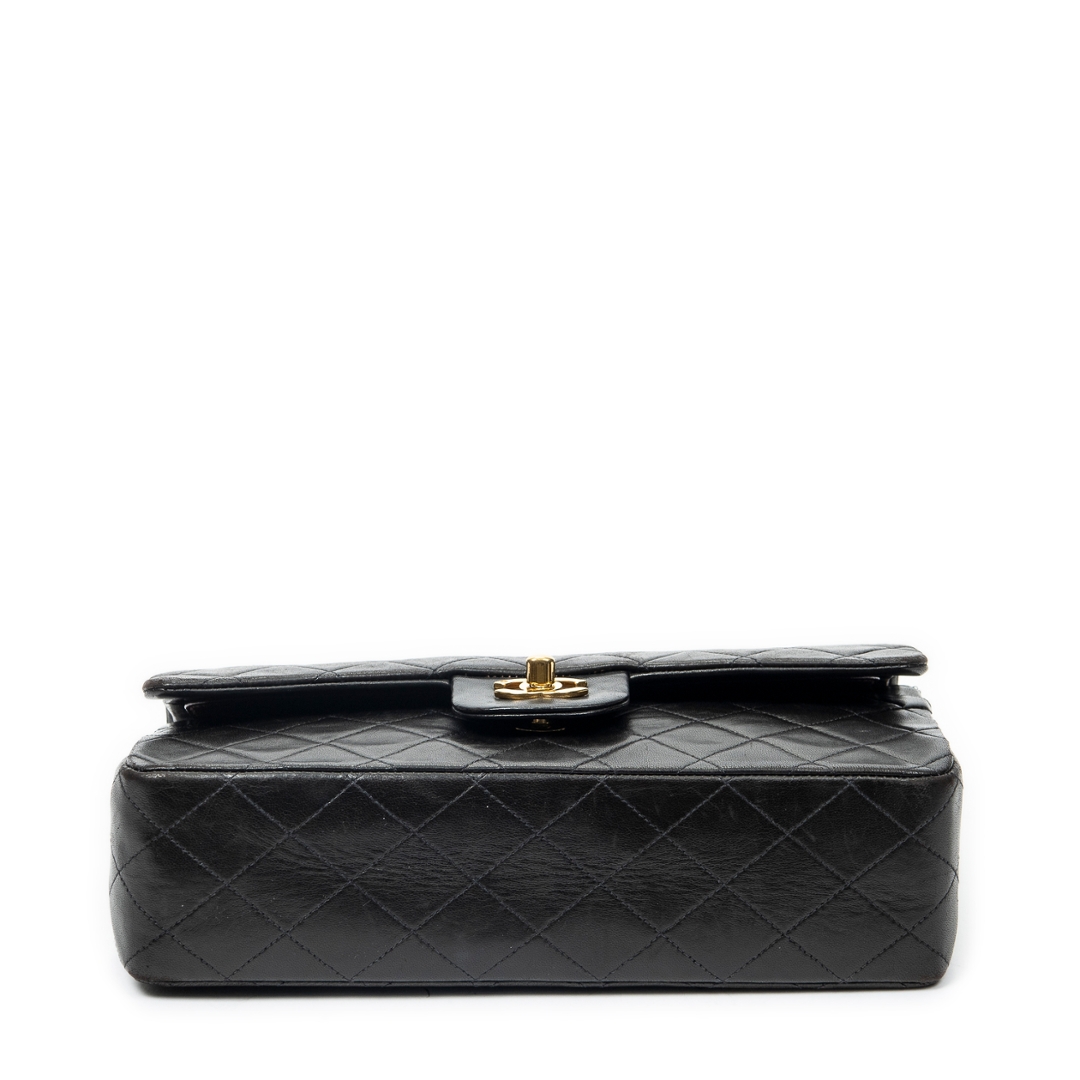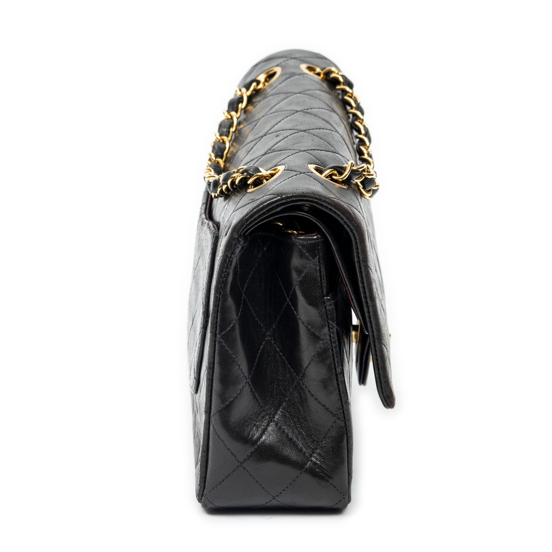 A vintage Chanel black quilted lambskin leather Classic Double Flap bag with a certificate of authenticity, Approximately 16cm height, 26cm width.