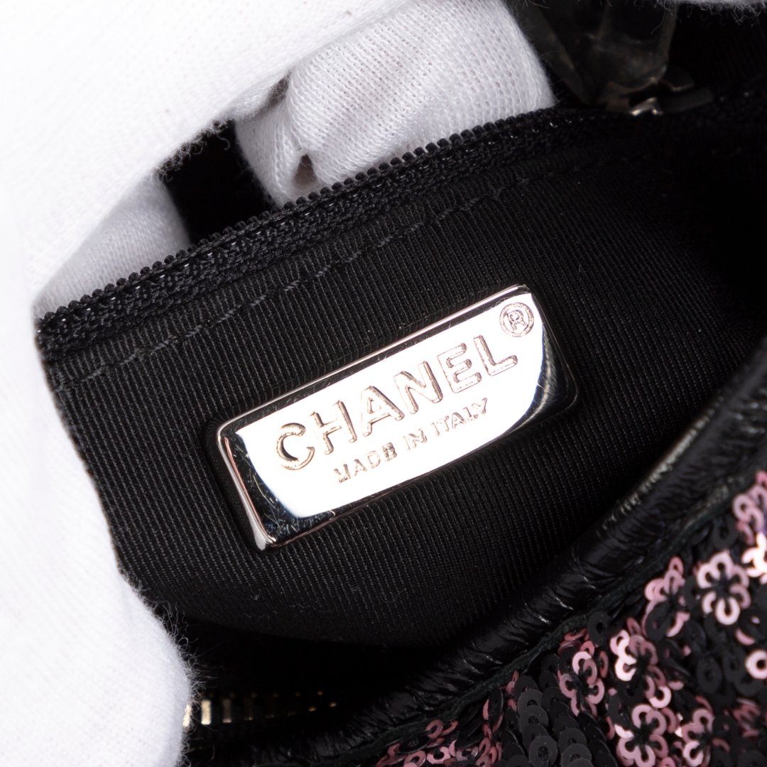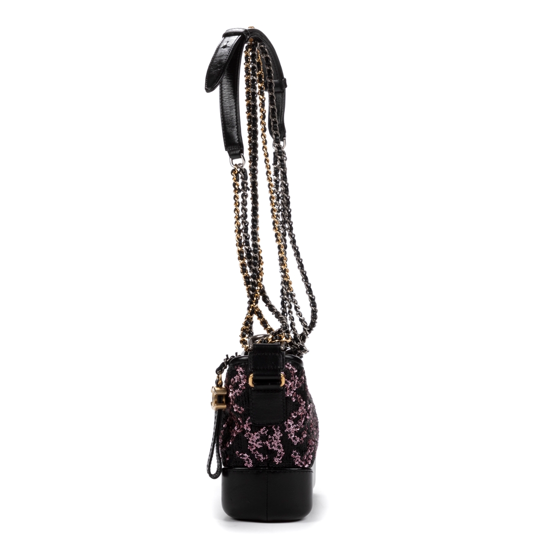 A vintage Chanel black calfskin leather & sequin canvas Gabrielle Sequins bag with a certificate of authenticity, Approximately 15cm height, 19cm width.