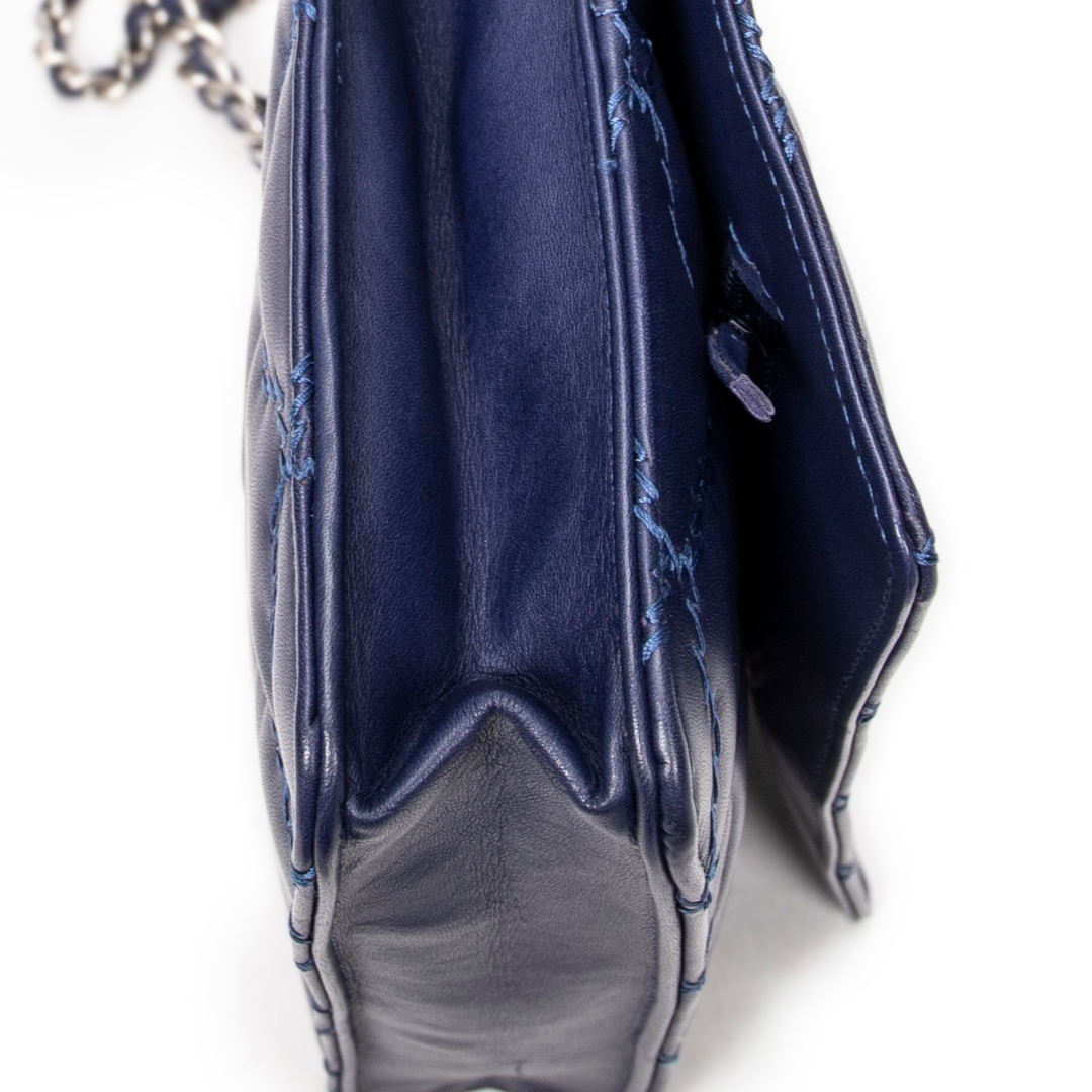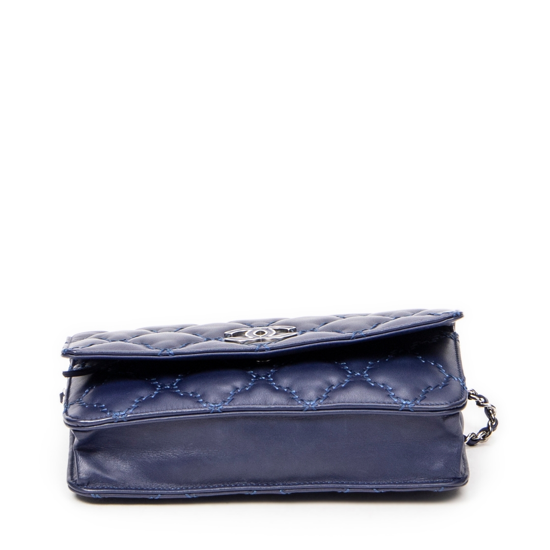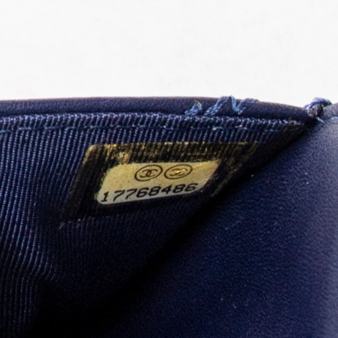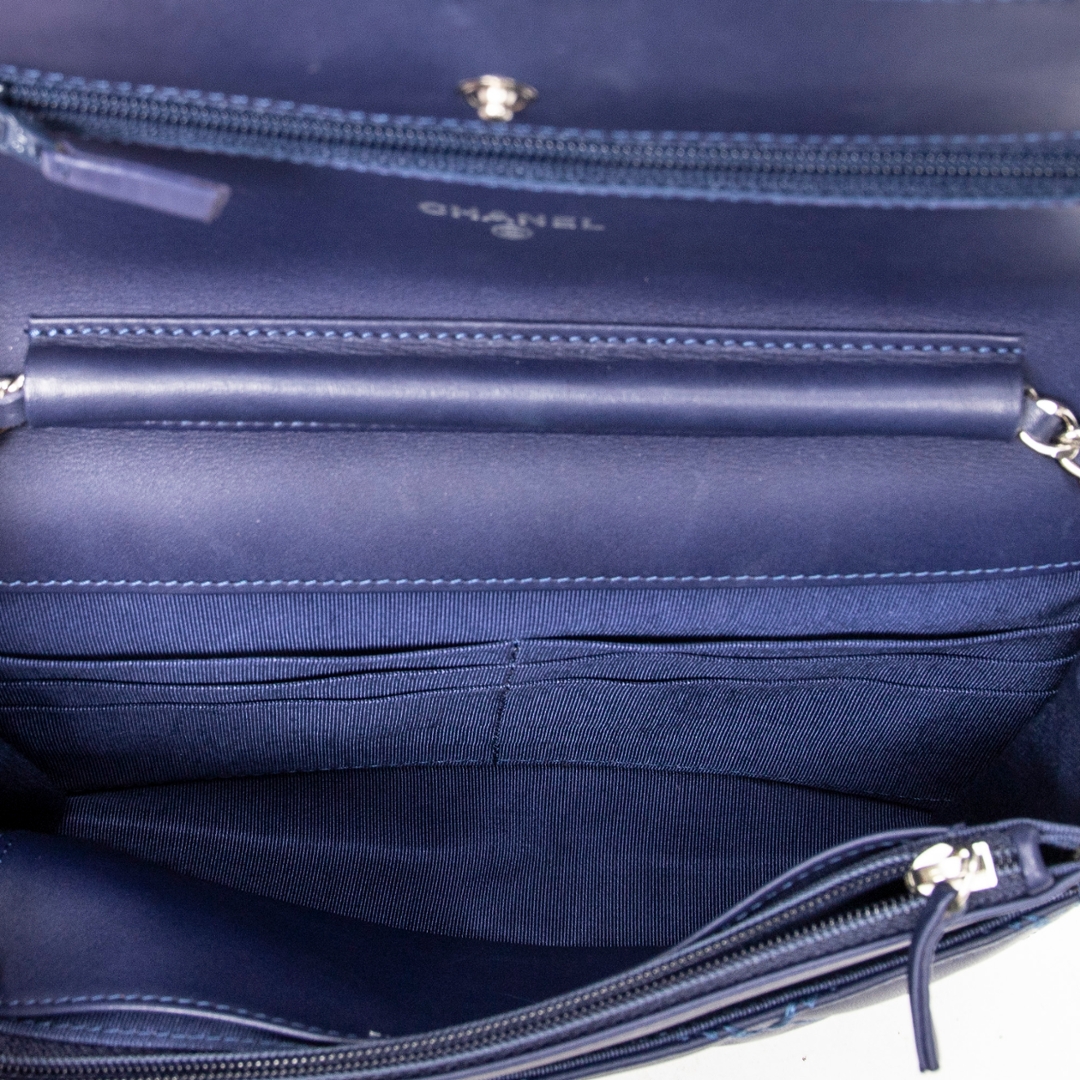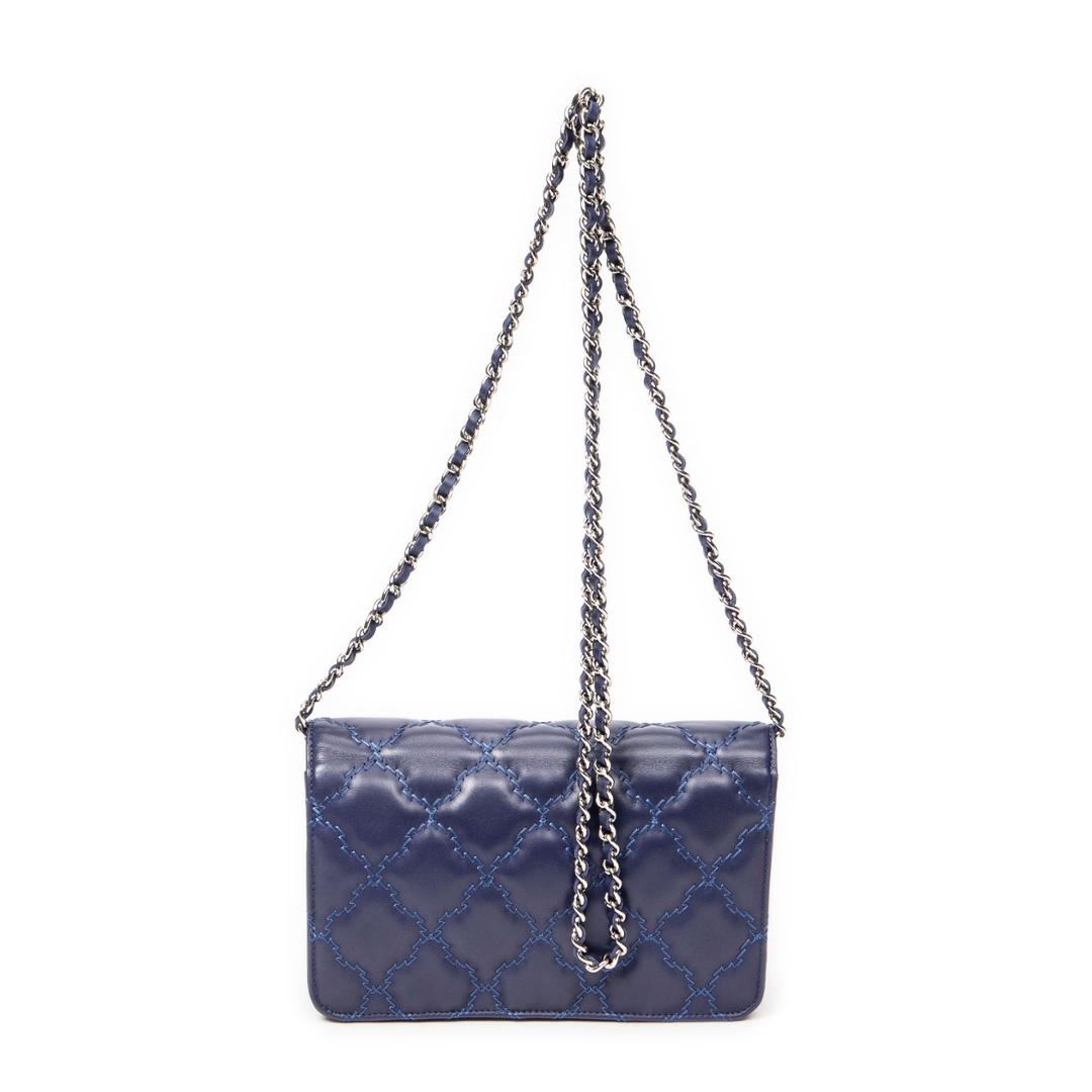 A vintage Chanel navy calf leather Hampton Wallet on Chain bag with a certificate of authenticity, Approximately 12cm height, 19cm width.