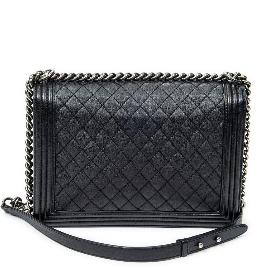 Measuring approximately 21cm in height and 29.5cm in width, this Large Boy bag offers a spacious interior while maintaining a sleek, structured silhouette. The adjustable chain strap allows for shoulder wear. Its robust design and refined materials make it suitable for daily use while retaining an unmistakable luxury appeal.