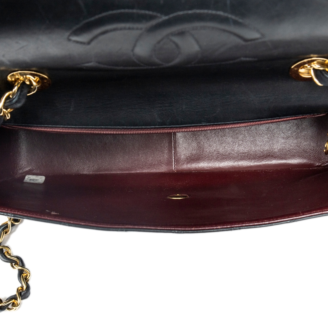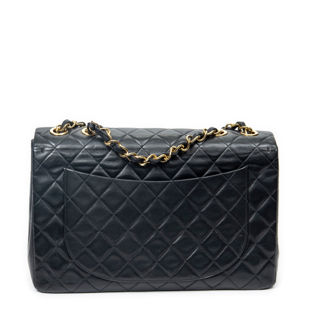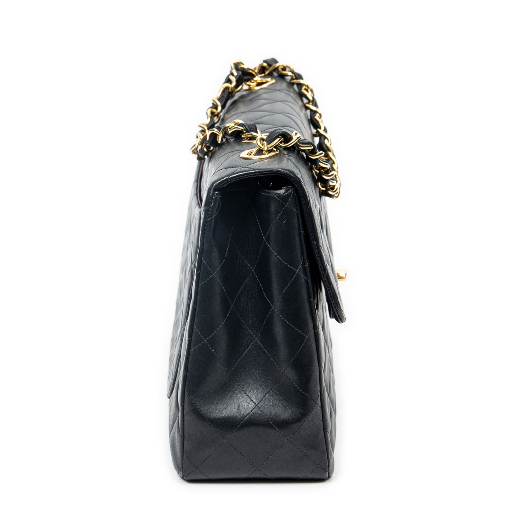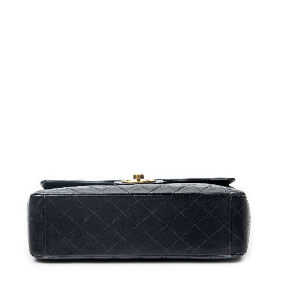 A vintage Chanel black quilted lambskin leather Maxi Jumbo XL Flap bag with a certificate of authenticity, Approximately 23cm height, 34cm width.
