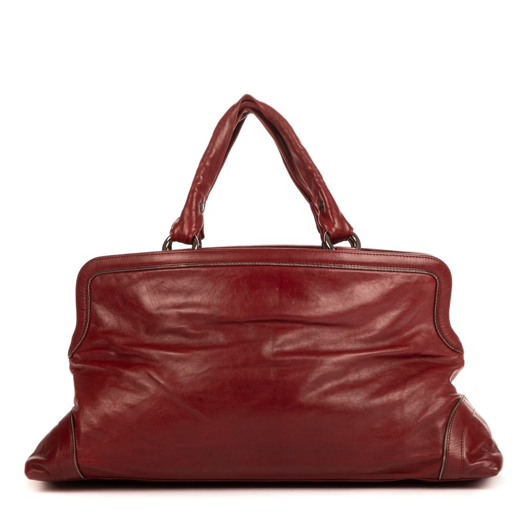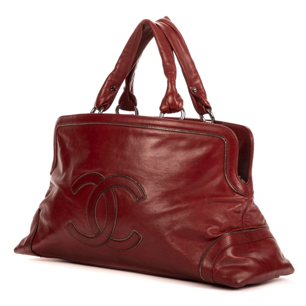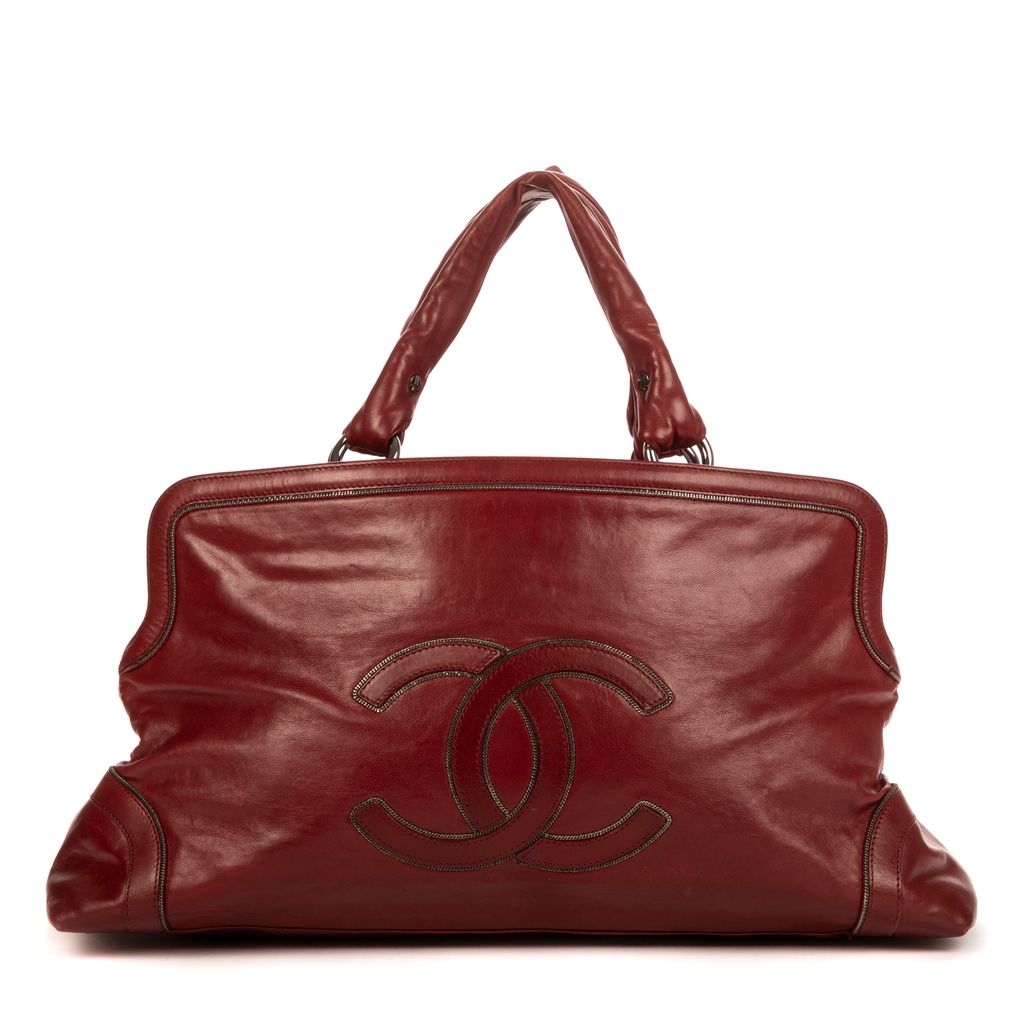 A vintage Chanel burgundy calf leather Medium CC Doctor's Bag with a certificate of authenticity, Approximately 20cm height, 46cm width.