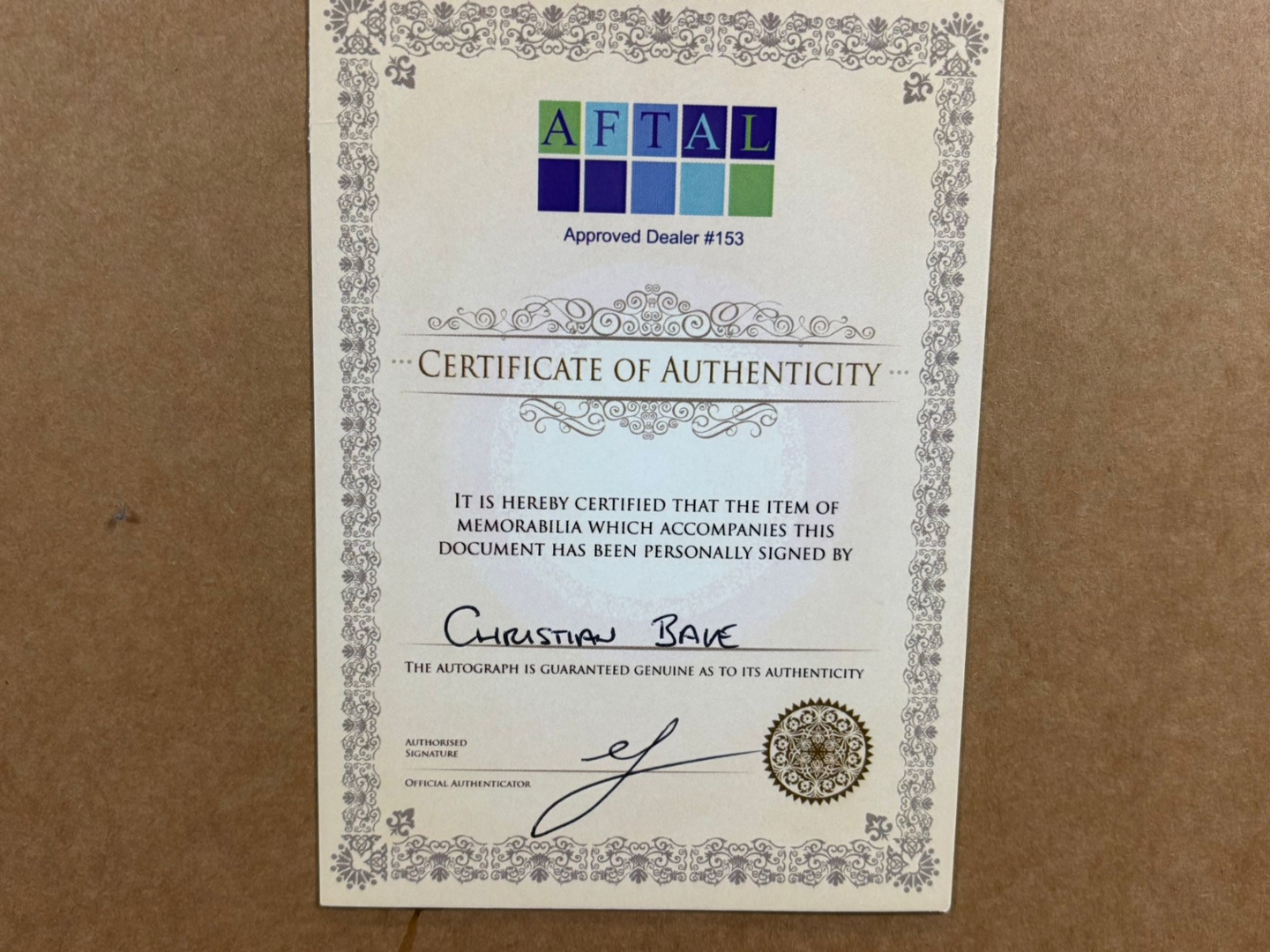 A Christian Bale signed and authenticated *The Dark Knight* picture, magnificently presented in a sleek display frame. A must-have for any Batman enthusiast or film memorabilia collector, this exclusive piece celebrates Bale’s iconic portrayal of the Caped Crusader in Christopher Nolan’s groundbreaking 2008 blockbuster.