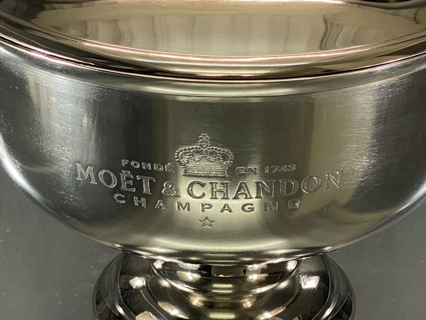 Crafted from high-quality chrome, the cooler features a sleek, modern design that complements any decor or setting. The Moet & Chandon branding adds a touch of elegance and sophistication, making it a standout piece for special occasions, events, or gatherings.