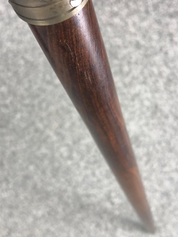 A brass and wooden walking stick, a fusion of elegance, functionality, and hidden wonders. Standing at approximately 37 inches in height and boasting a slender width of 2 inches, this walking stick is a testament to craftsmanship and ingenuity.