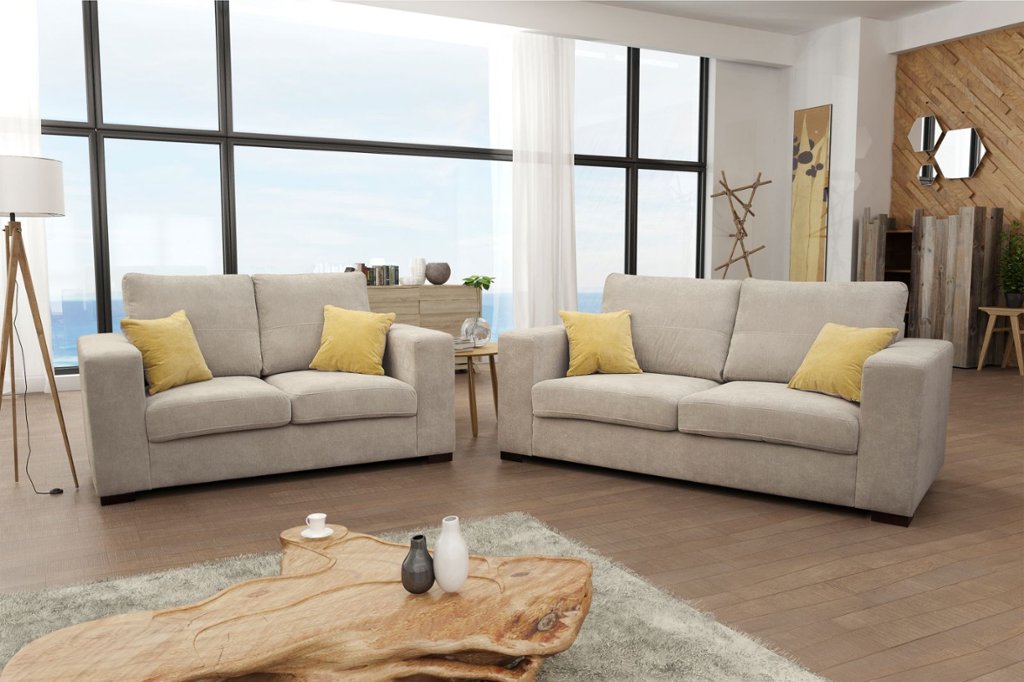 Introducing the cream Melody Sofa Suite, an embodiment of contemporary elegance, resting atop sleek black legs. Crafted to redefine comfort and style, this suite offers a harmonious blend of sophistication and practicality.