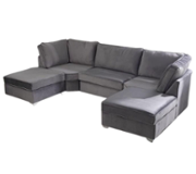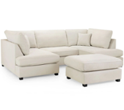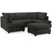 The suite rests atop sleek black legs, not only providing sturdy support but also adding a modern touch to its design. Their minimalist silhouette effortlessly complements the plush upholstery, elevating the overall aesthetic.