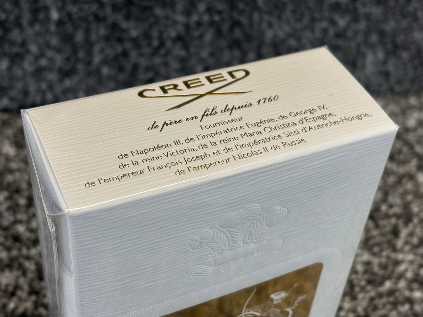A bottle of Creed - Aventus Eau De Parfum in a presentation box.