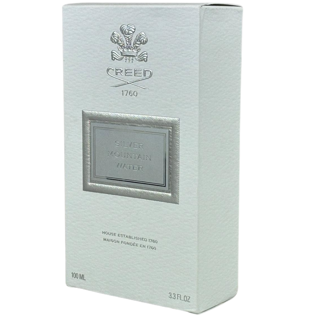 A 100ml bottle of Silver Mountain Water Eau De Parfum by Creed, presented in its official presentation box. Inspired by the crisp purity of alpine streams, this iconic fragrance captures a fresh, invigorating character with refined sophistication. Clean and luminous, it delivers an uplifting presence from the very first spray.