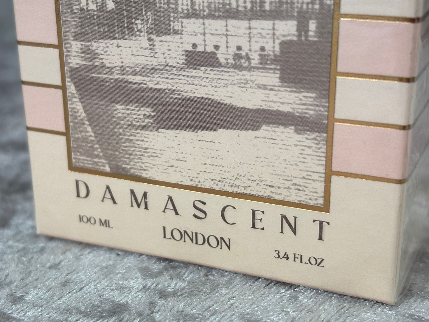 A bottle of Damascent - Barada Parfum in a presentation box.