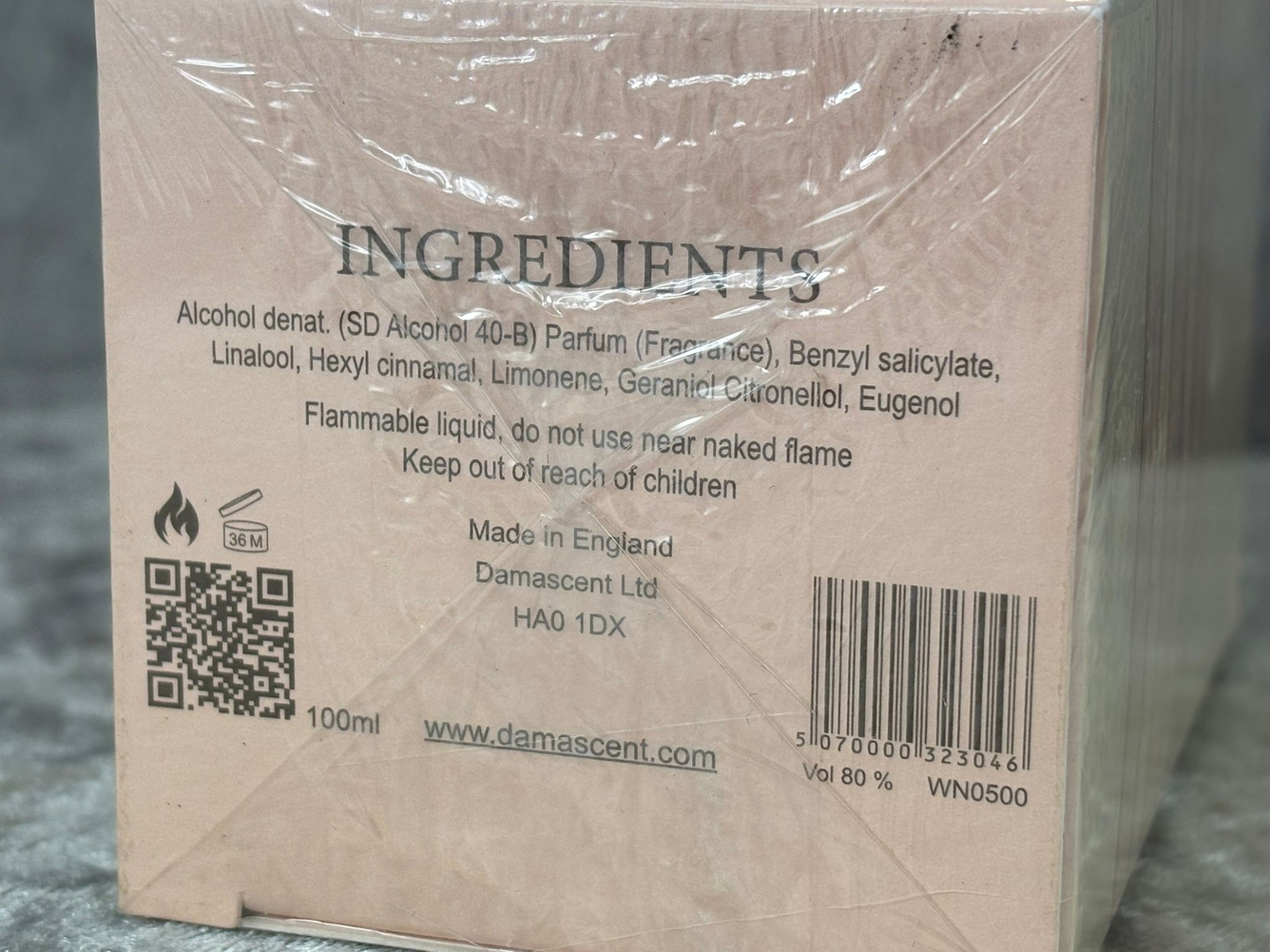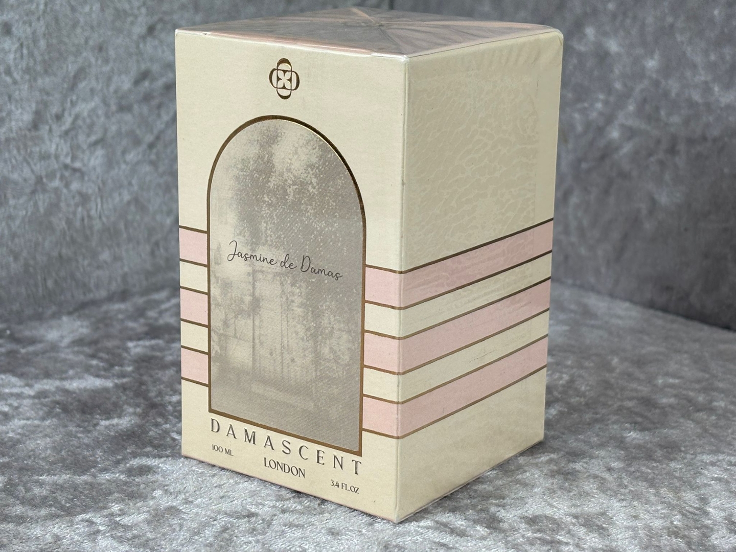 A bottle of Damascent - Jasmine De Damas Parfum in a presentation box.