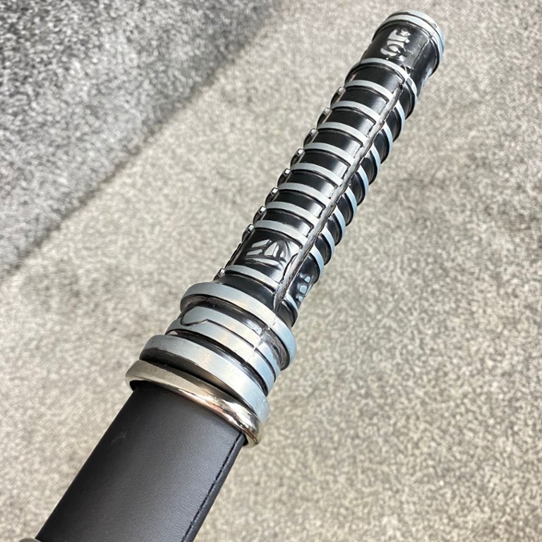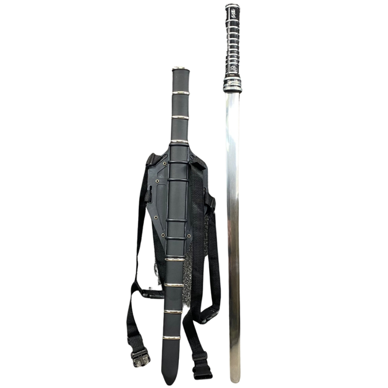 Accompanying the sword is a custom-designed sheath, meticulously crafted to provide a snug and secure fit for the blade. The sheath features authentic detailing and accents, enhancing the overall aesthetic appeal of the sword.