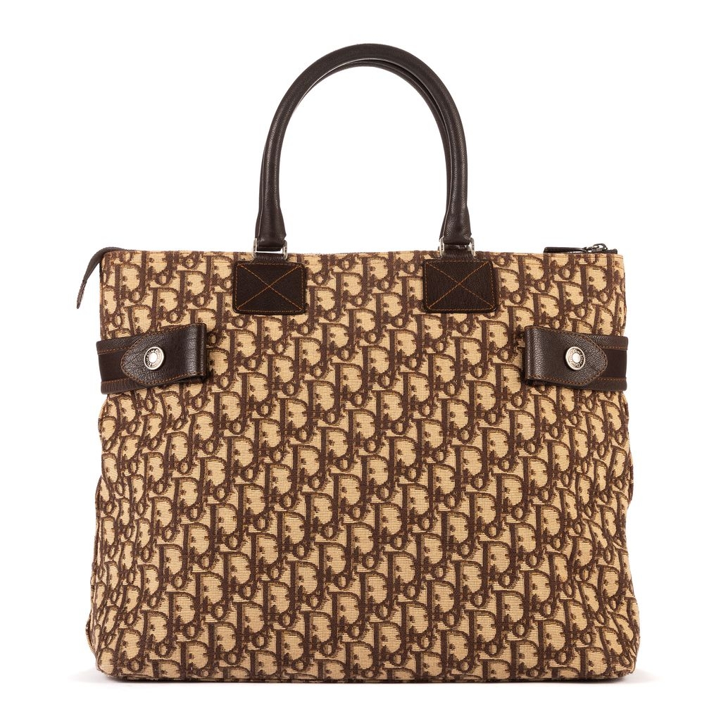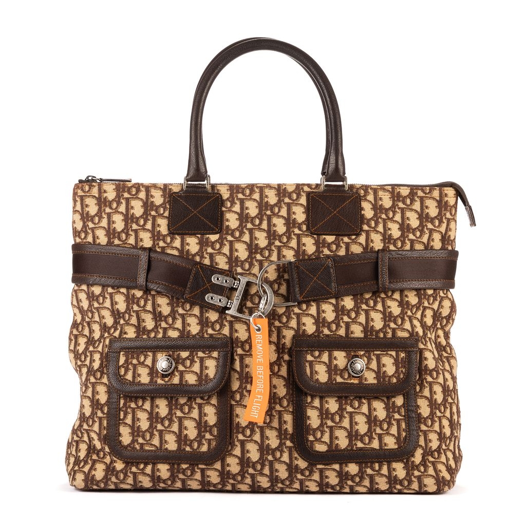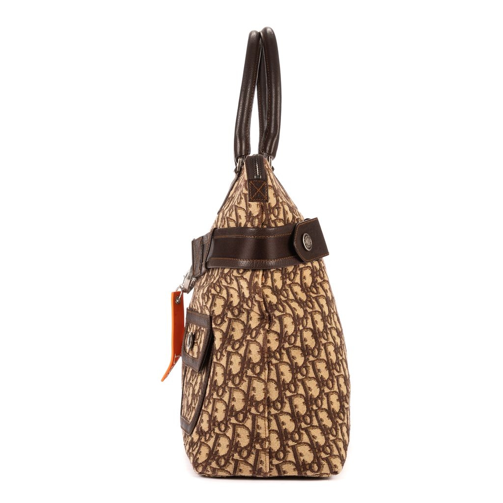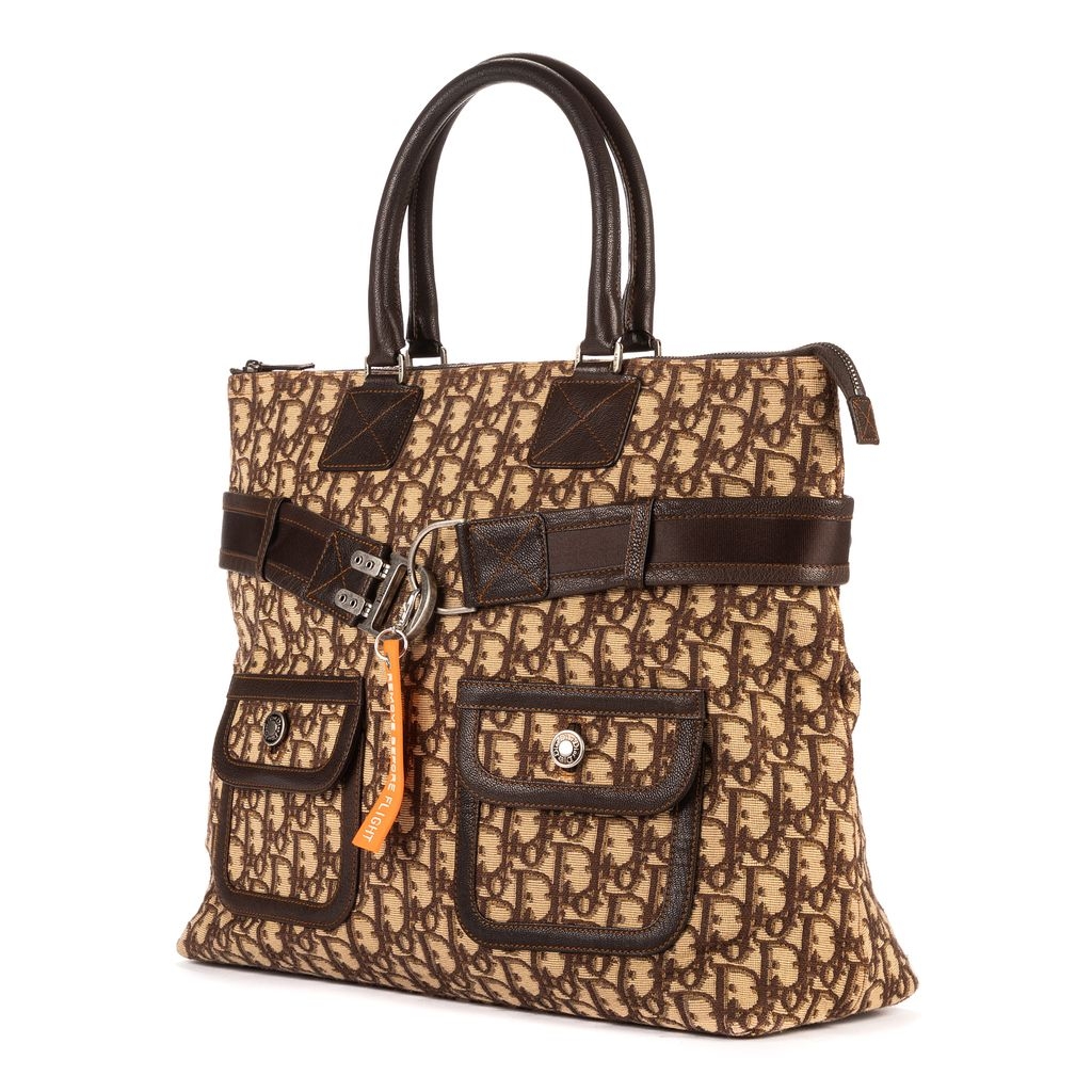 A vintage Dior dark brown/beige canvas Flight Shopping Tote bag with a certificate of authenticity, Approximately 35cm height, 39cm width.