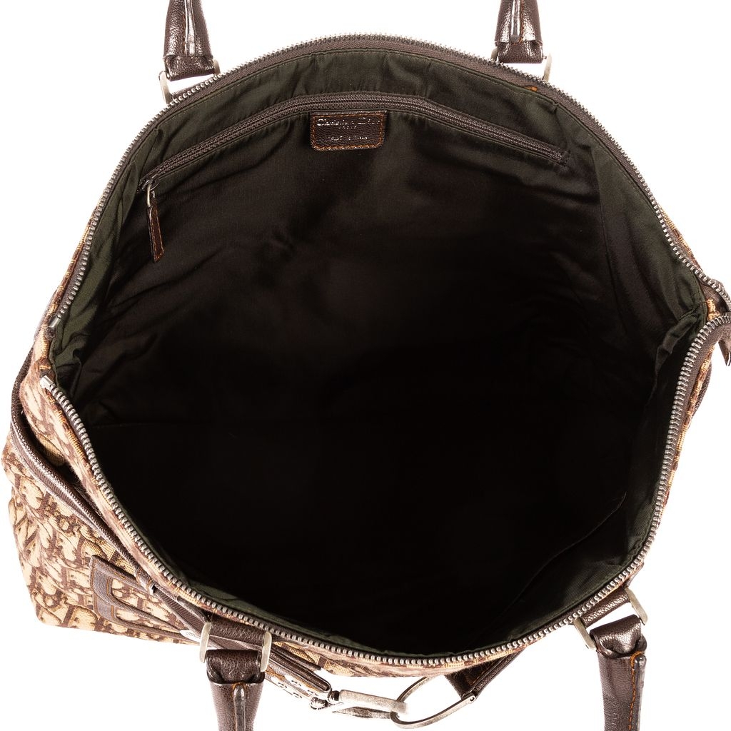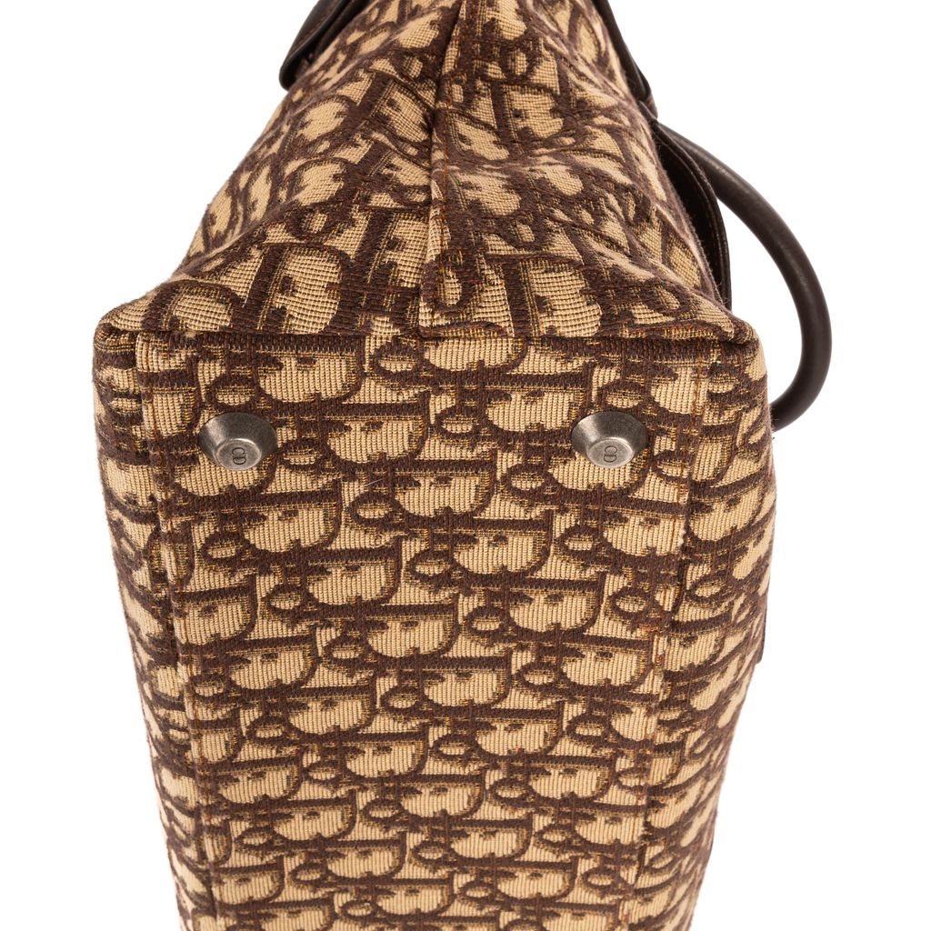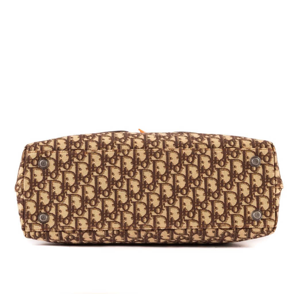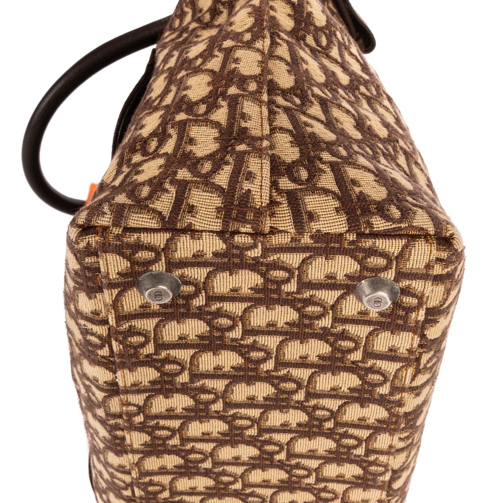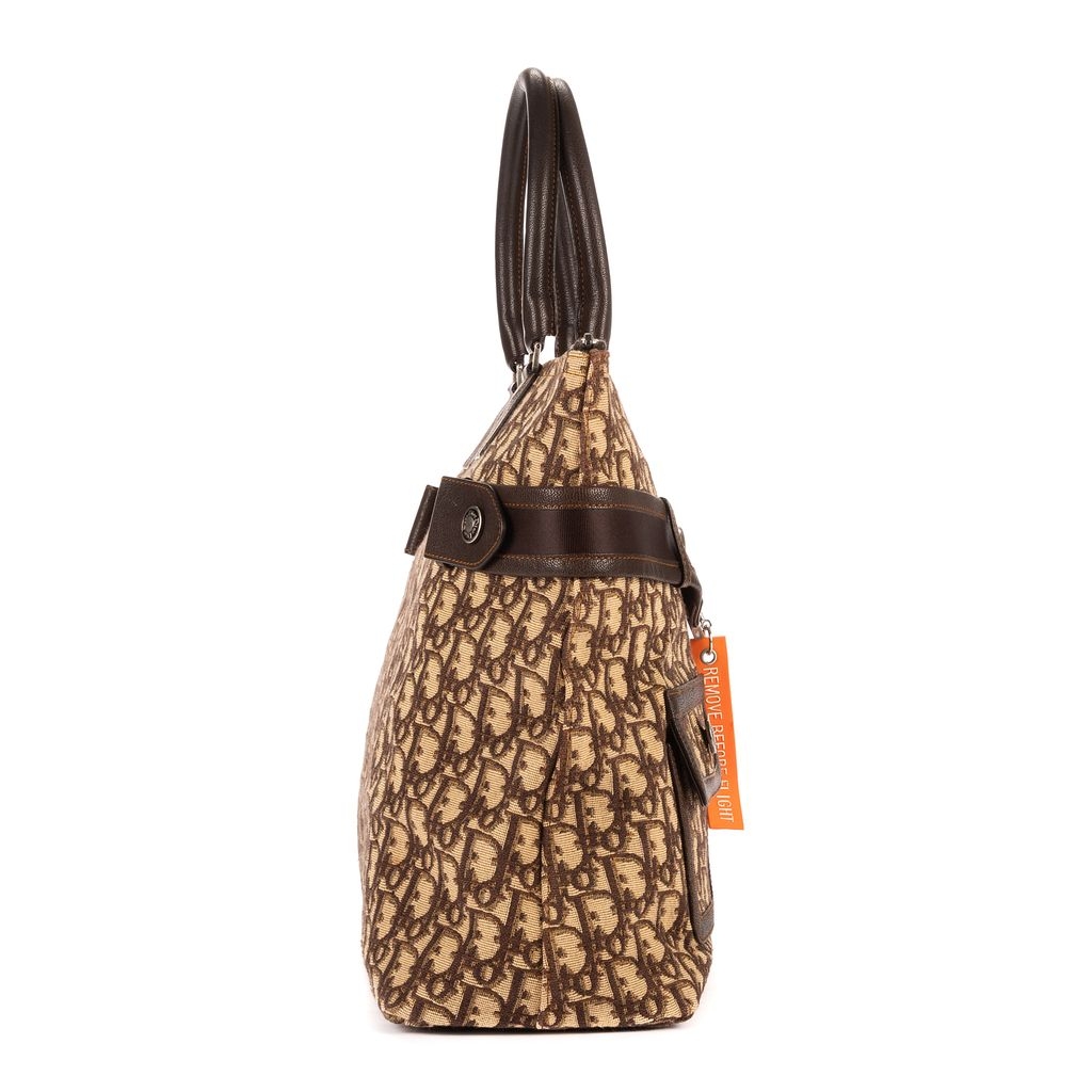 A vintage Dior dark brown/beige canvas Flight Shopping Tote bag with a certificate of authenticity, Approximately 35cm height, 39cm width.
