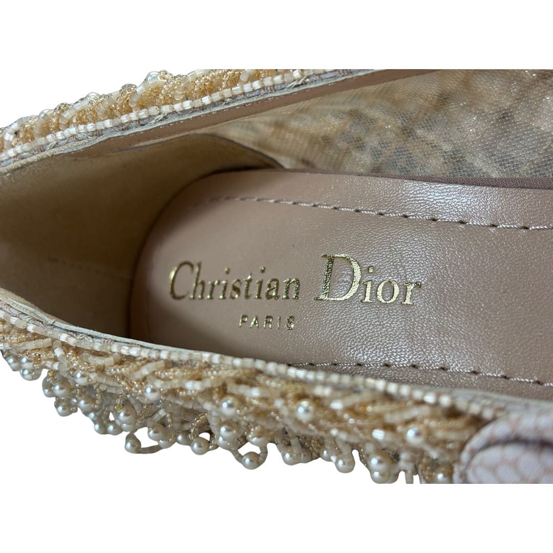 - > Dior Haute Couture Nude Embellished Mesh Pumps with Pearl & Beaded Detailing.