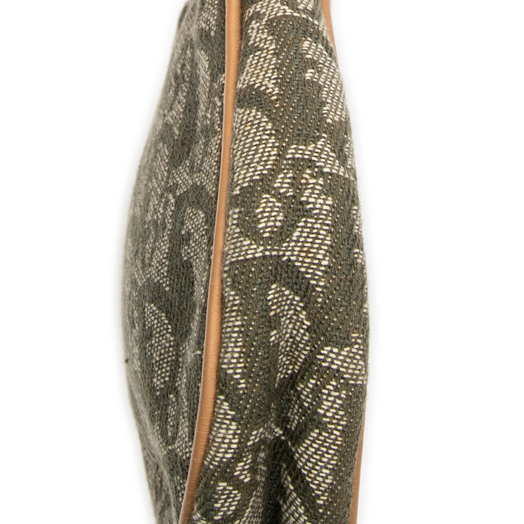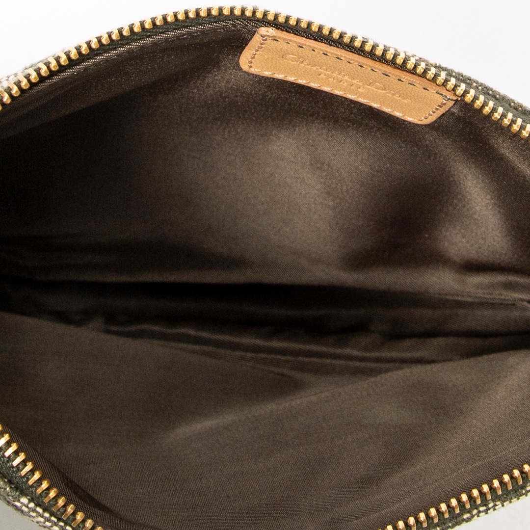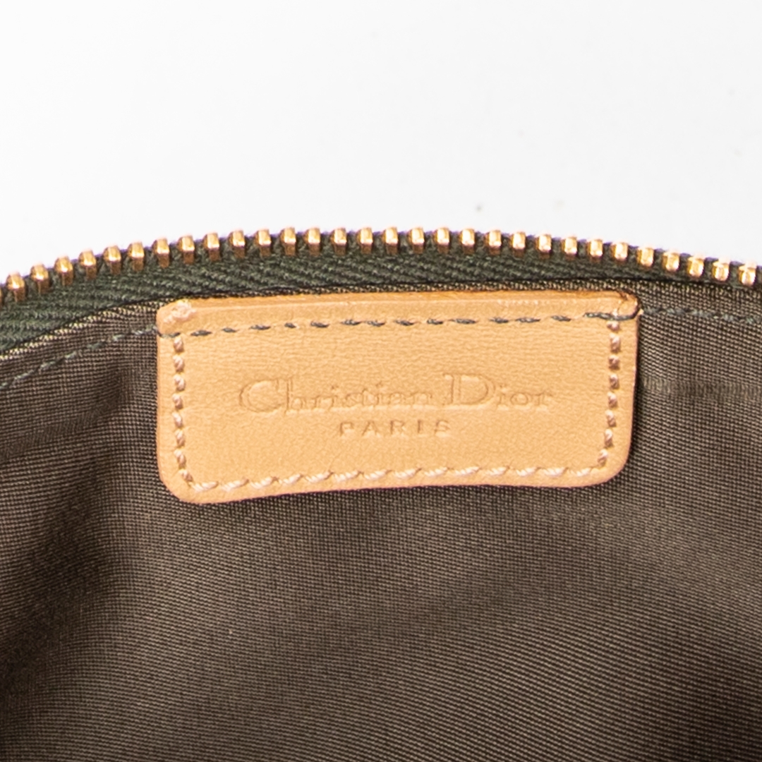 A vintage Dior green/beige canvas Mini Saddle Pochette bag with a certificate of authenticity. Approximately 16cm height, 20cm width.