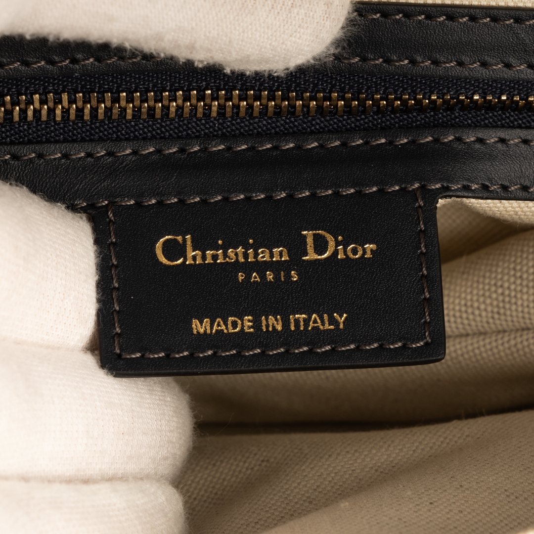 A vintage Navy Blue Dior Saddle Oblique Diorissimo Oblique bag with a certificate of authenticity, Approximately 20cm height, 25cm width.