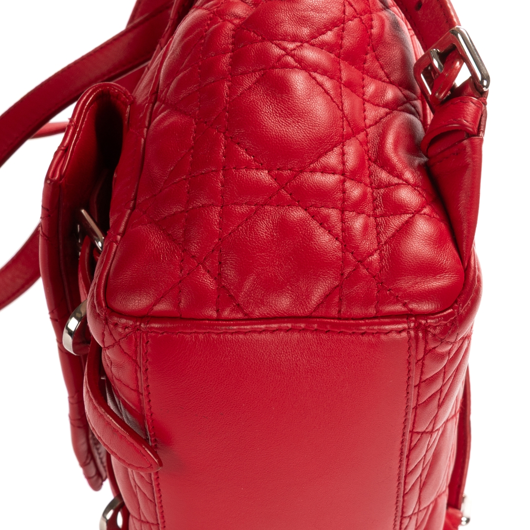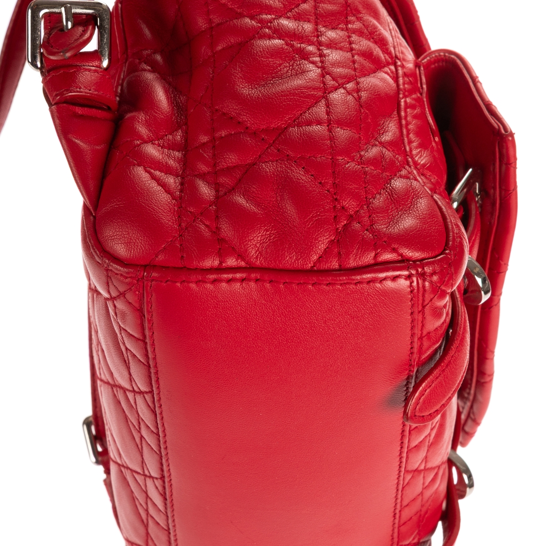 A vintage red calf leather Dior Stardust Backpack, a playful yet elegant piece that captures the essence of modern Dior design. Crafted from supple calf leather, this beautifully structured backpack features the brand’s signature Cannage quilting — a timeless pattern symbolising Dior’s dedication to craftsmanship and refined detail. The bold red tone adds a contemporary edge, while the silver-tone Dior logo and hardware lend a touch of understated glamour.