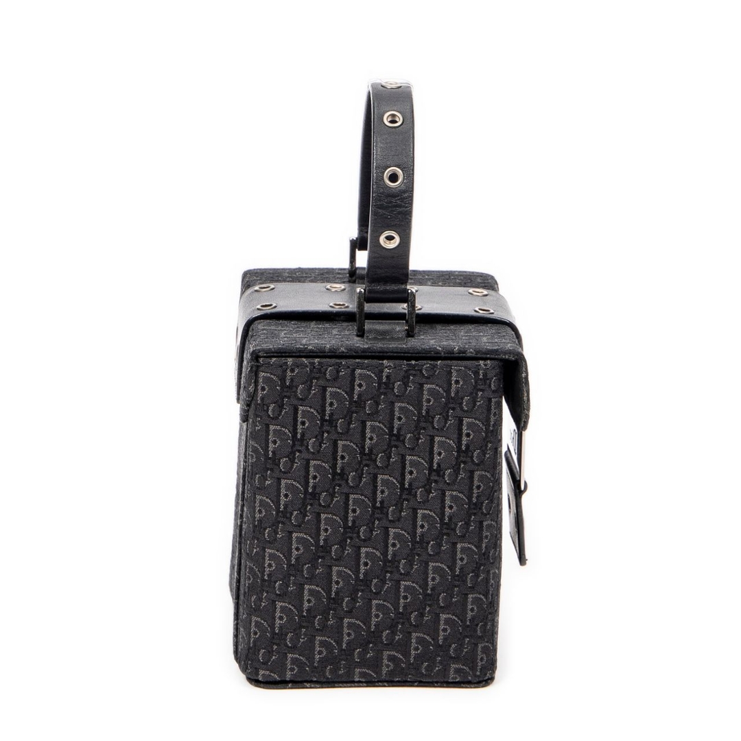 A vintage black canvas Dior Street Chic Mini Vanity Case with a certificate of authenticity, Approximately 12.5cm height, 11cm width.