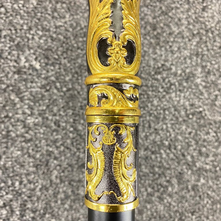 Crafted with meticulous attention to detail, the Fantasy Gold Walking Cane features a shaft adorned with intricate designs inspired by the realms of fantasy and magic. The golden finish adds a touch of opulence, while the sturdy construction ensures both durability and reliability.