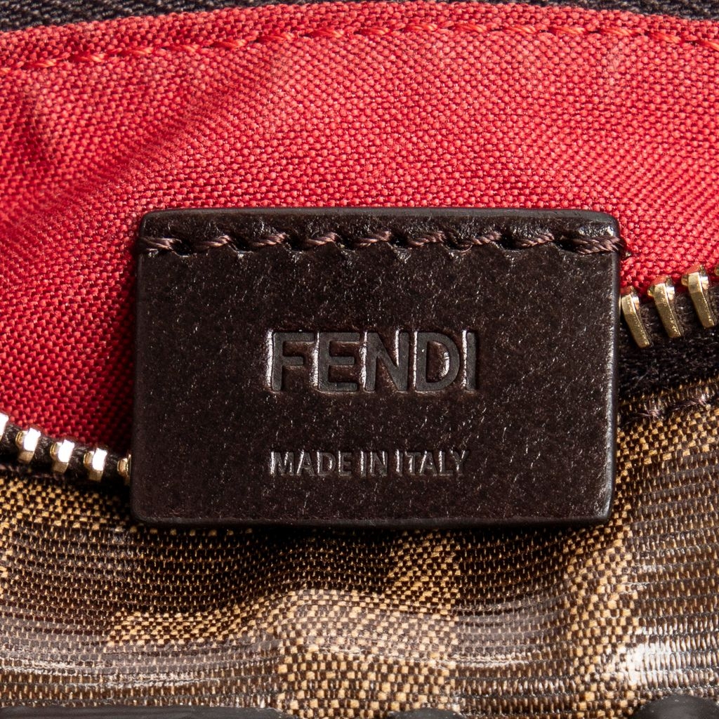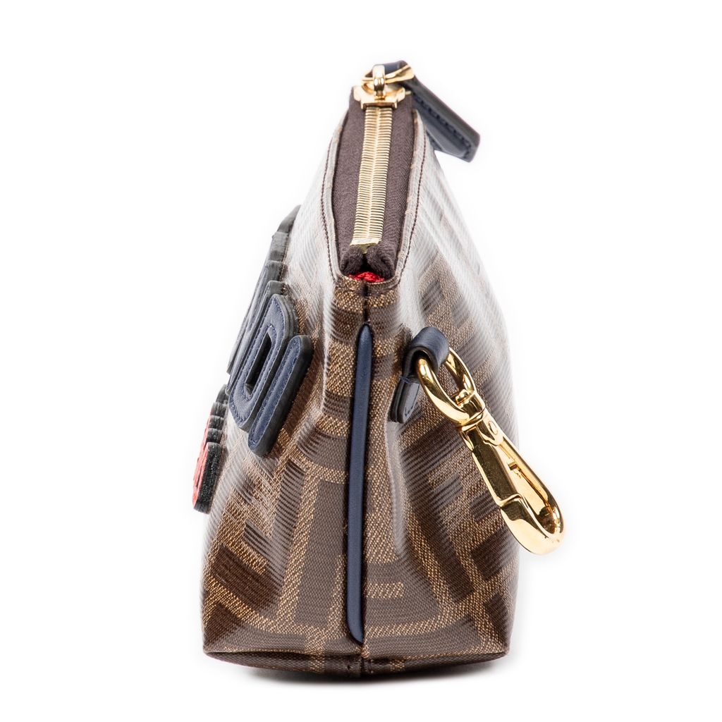 A vintage Fendi brown coated canvas Fendi x Fila Collab Zippy Coin Pouch bag with a certificate of authenticity, Approximately 10cm height, 12cm width.