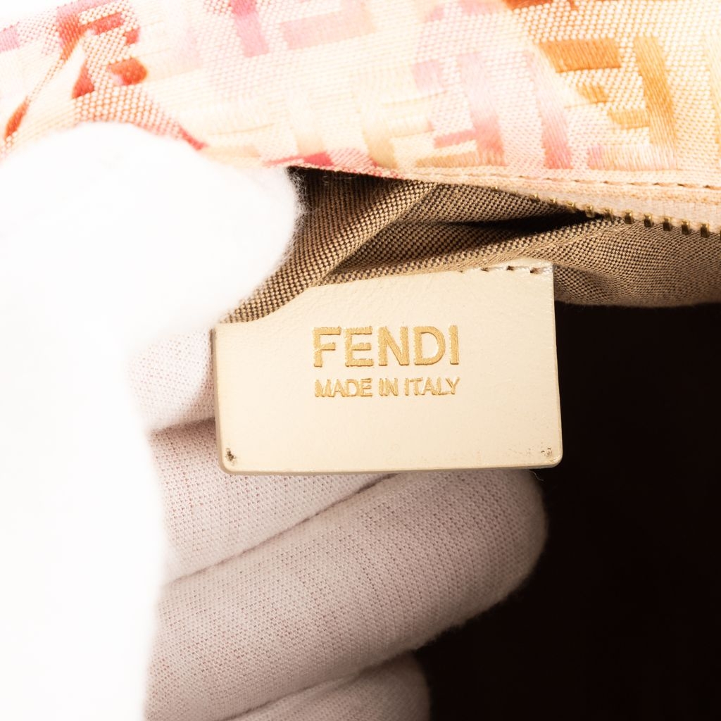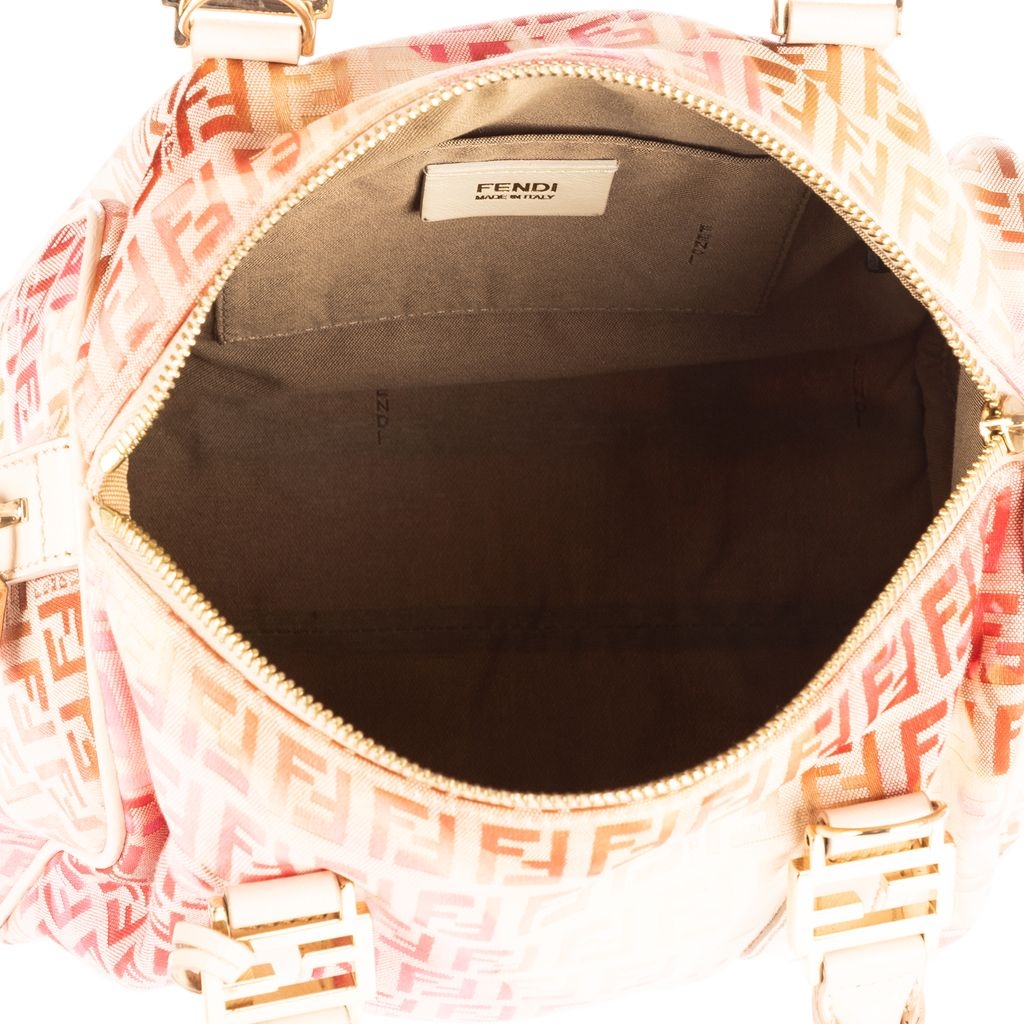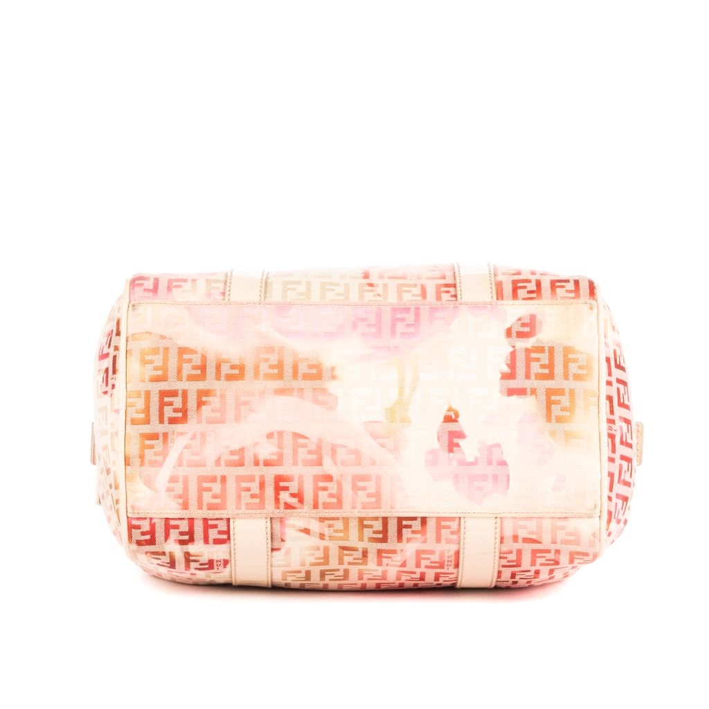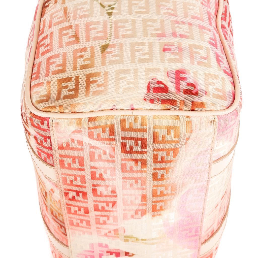 A vintage Fendi ivory/pink canvas Flora Small Boston bag with a certificate of authenticity, Approximately 22cm height, 25cm width.