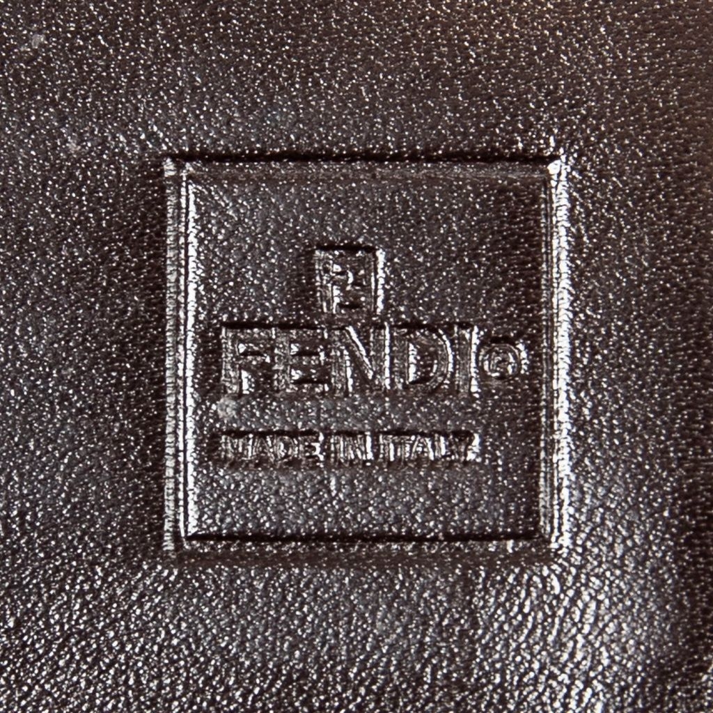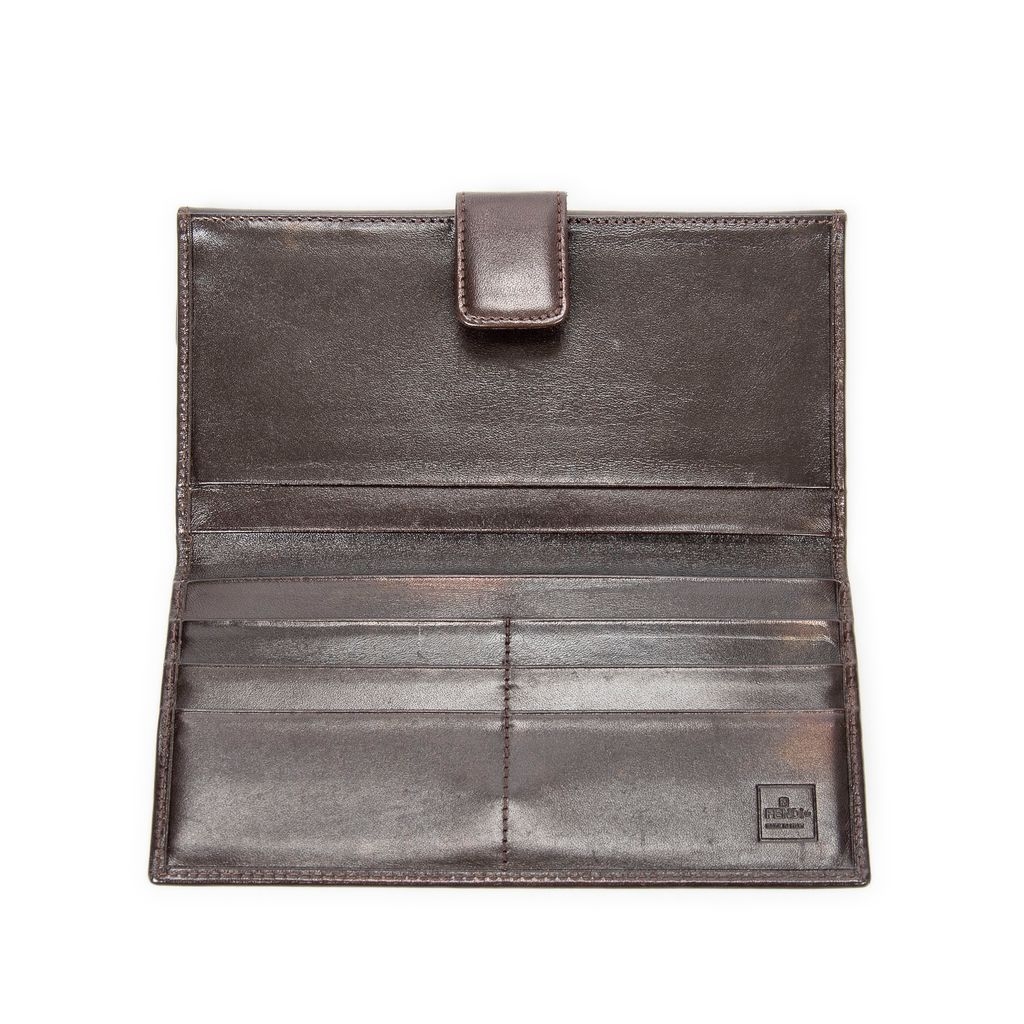 A vintage Fendi khaki/dark brown canvas Large Bifold Wallet with a certificate of authenticity, Approximately 10cm height, 18cm width.