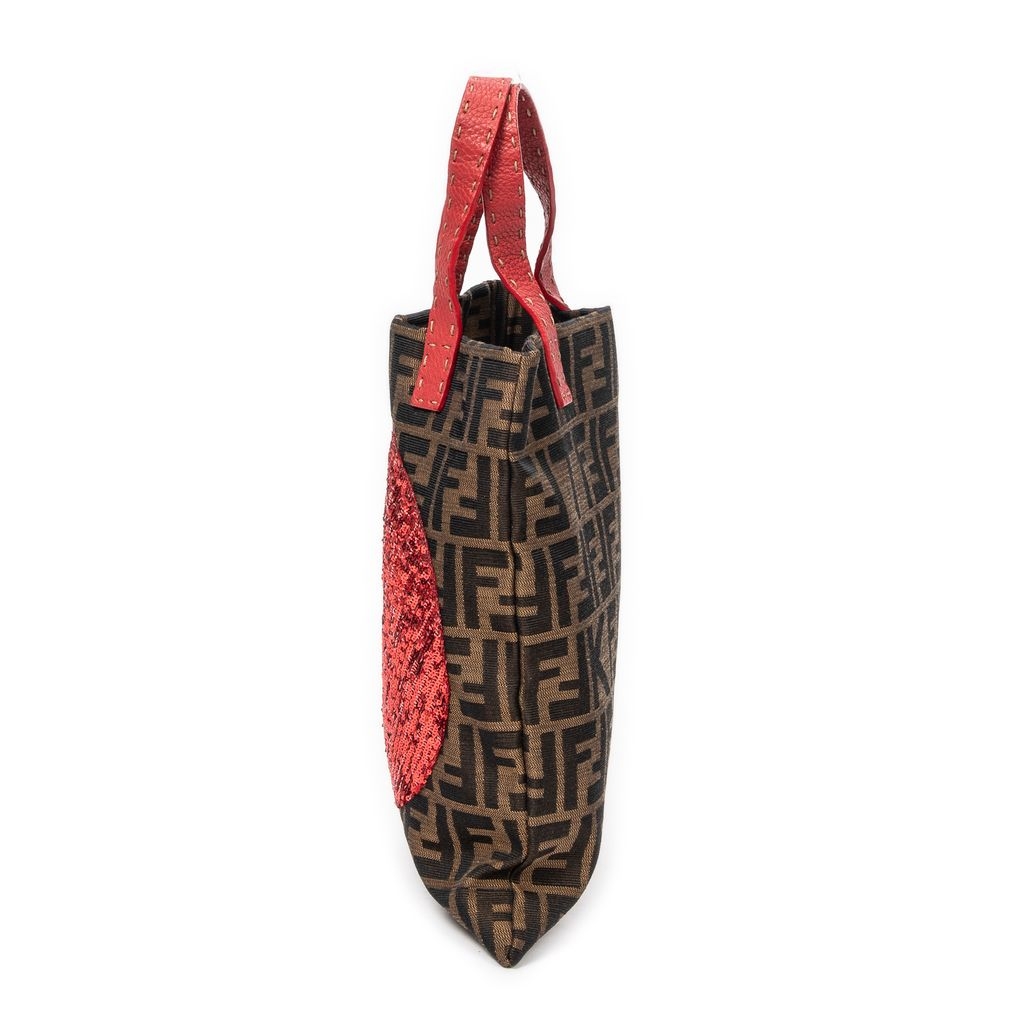 A vintage Fendi red/black canvas Sequins Flat Tote bag with a certificate of authenticity, Approximately 30cm height, 25cm width.