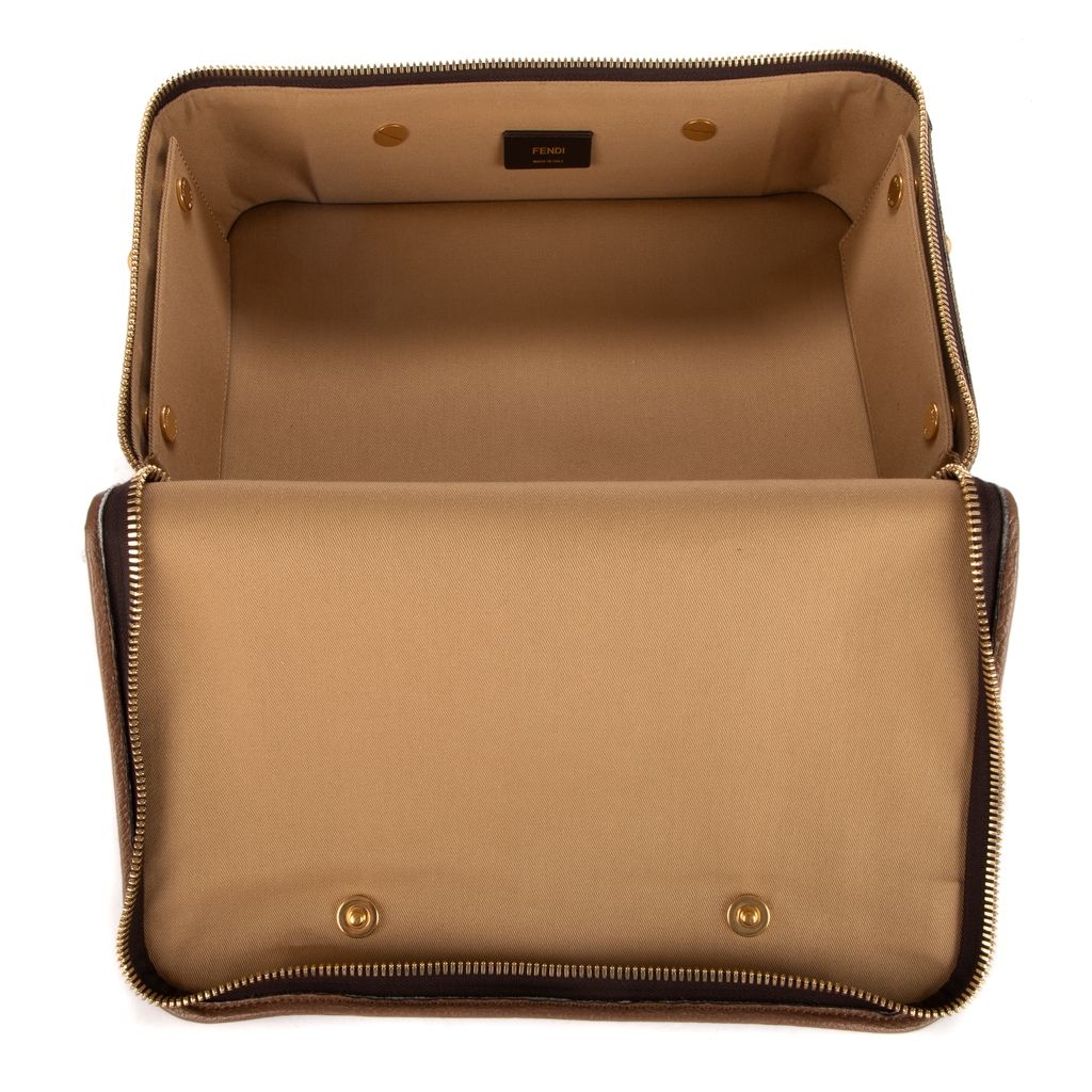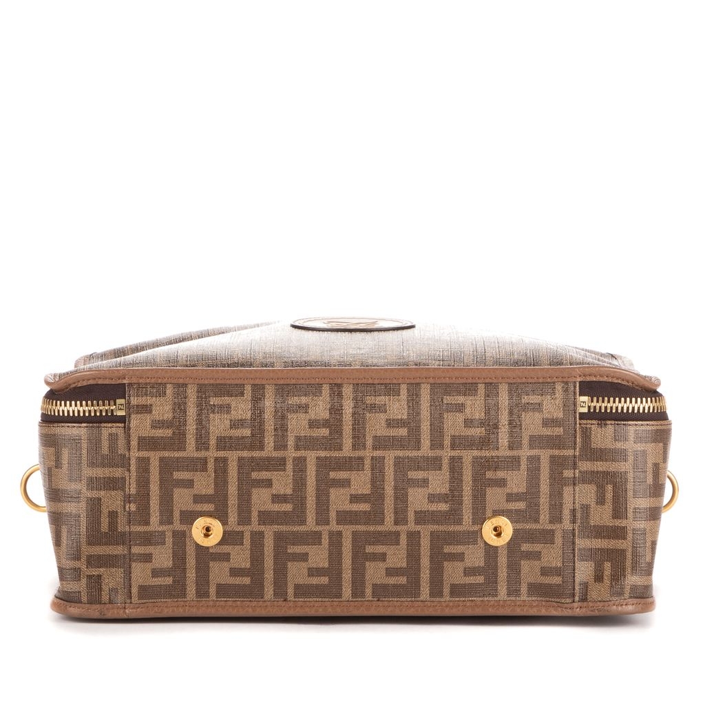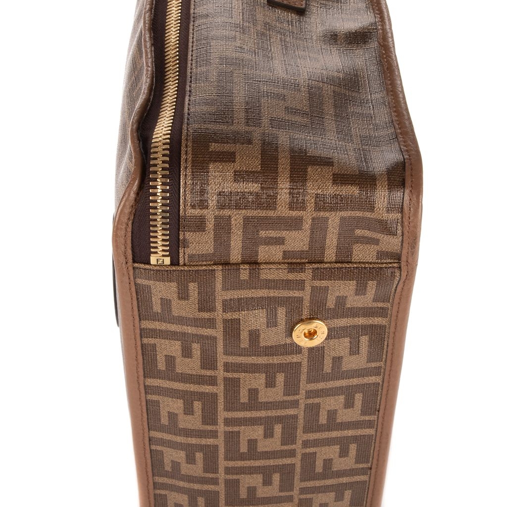A vintage Fendi brown canvas Small Soft Travel Case with a certificate of authenticity, Approximately 21cm height, 33cm width.