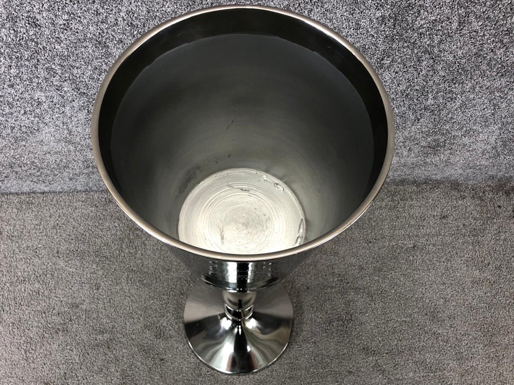 In summary, the chrome floor-standing Veuve Clicquot Champagne bucket is a timeless and iconic piece that adds a touch of luxury to any occasion. Its exquisite craftsmanship, sleek design, and association with one of the world's most renowned Champagne brands make it a coveted accessory for those who appreciate the finer things in life.