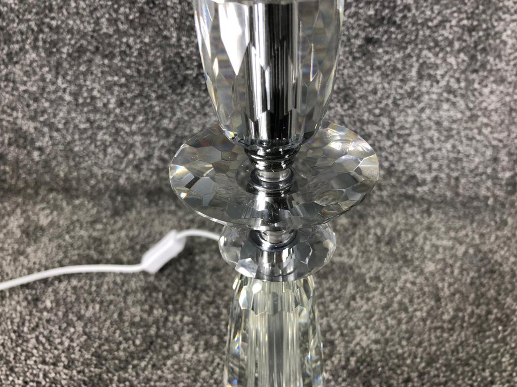 Ideal for bedrooms, living spaces, or refined office settings, this crystal and chrome lamp serves as both a practical lighting solution and a stunning decorative feature. Its blend of clarity, craftsmanship, and contrast ensures it stands out as a statement piece in any elegant home décor.
