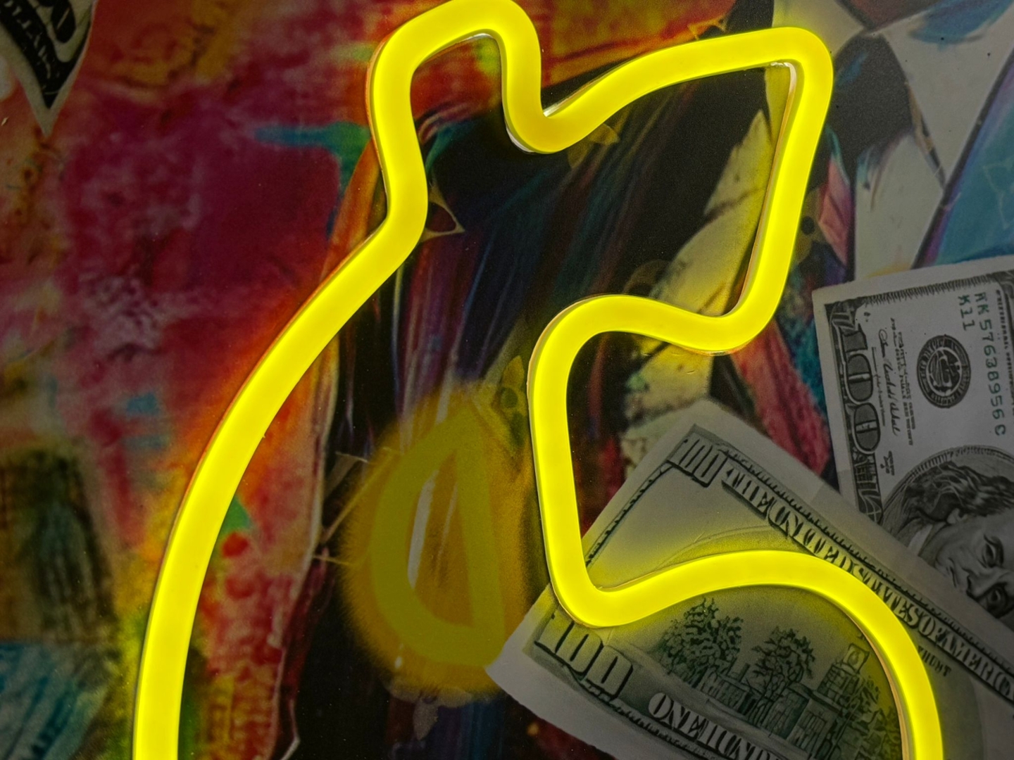 dollar-sign LED takes centre stage, glowing brilliantly against the