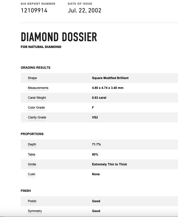 This ring has a unique GIA serial number laser-engraved on the diamond.