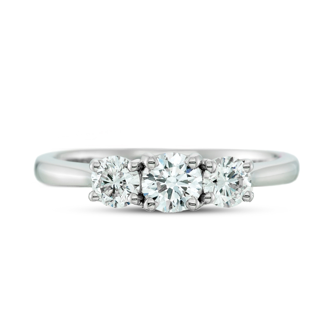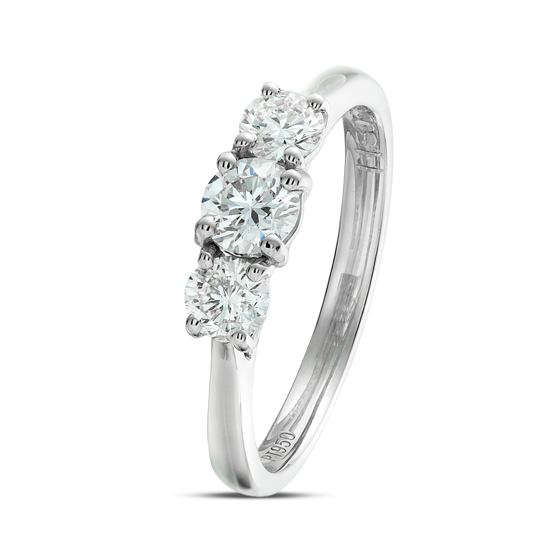 A brand-new, unused, certified natural diamond three-stone eternity ring, with three brilliant-cut diamonds, set in platinum.